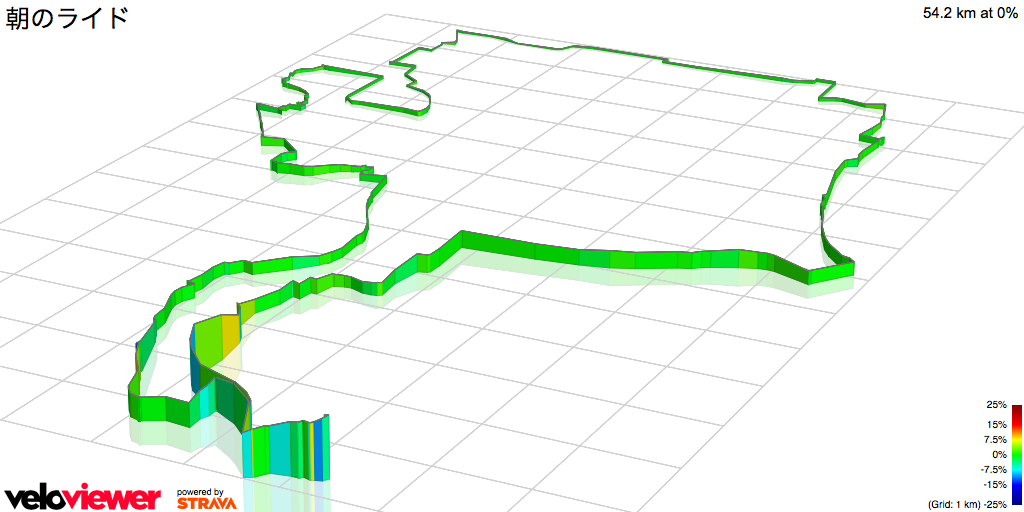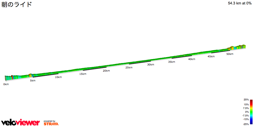 今回は、最初に少し下って、最後に少し上るぐらいで、ド平坦だった。結局、十万道路も通らなかったから。 ^^;