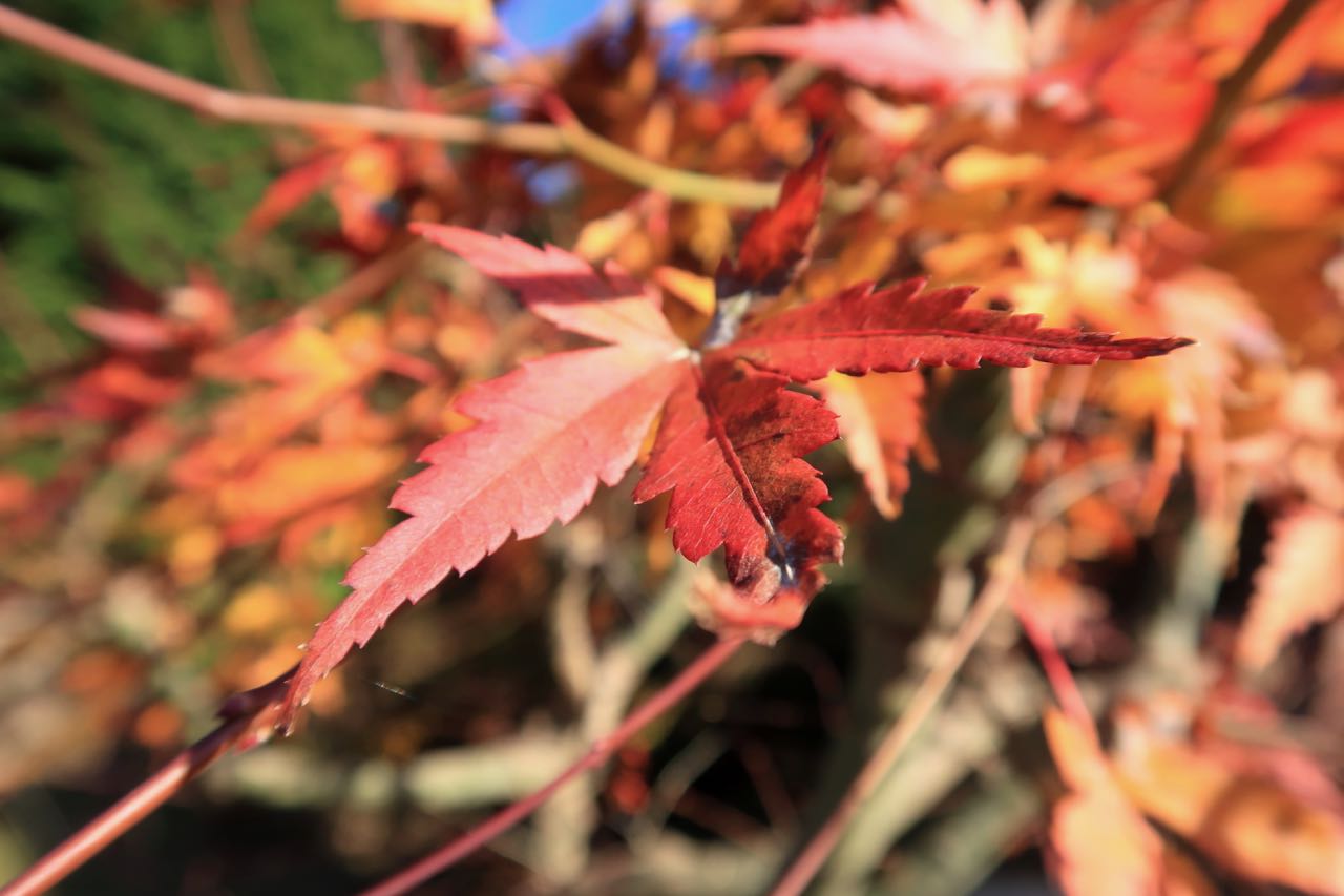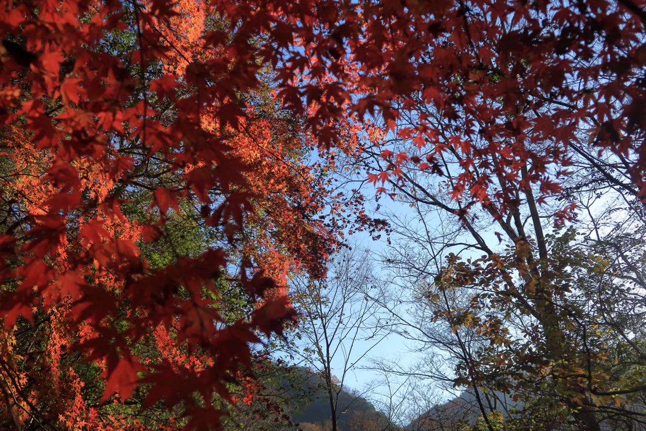 紅葉も終盤で、奥には既に葉の落ちた木々も見える。