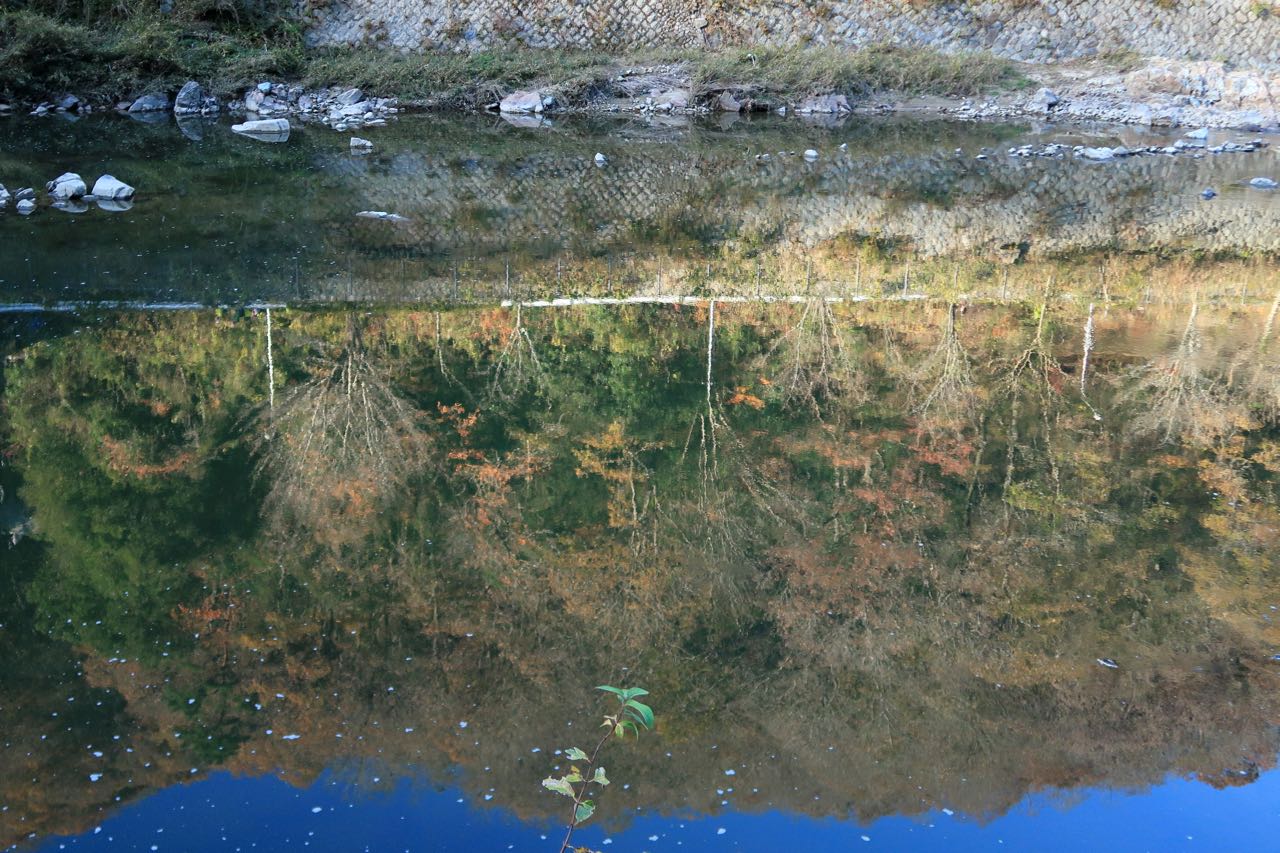 川沿いの風景。ほとんど水流がなく、しかも凪だったので、川面の鏡面写真を狙ったのだけど、2枚目の逆さ絵は、なかなかわかりにくくなってしまった。 ^^;