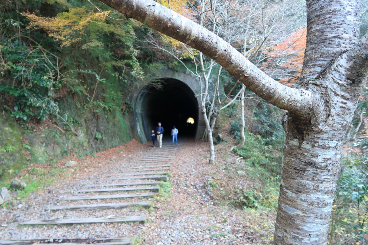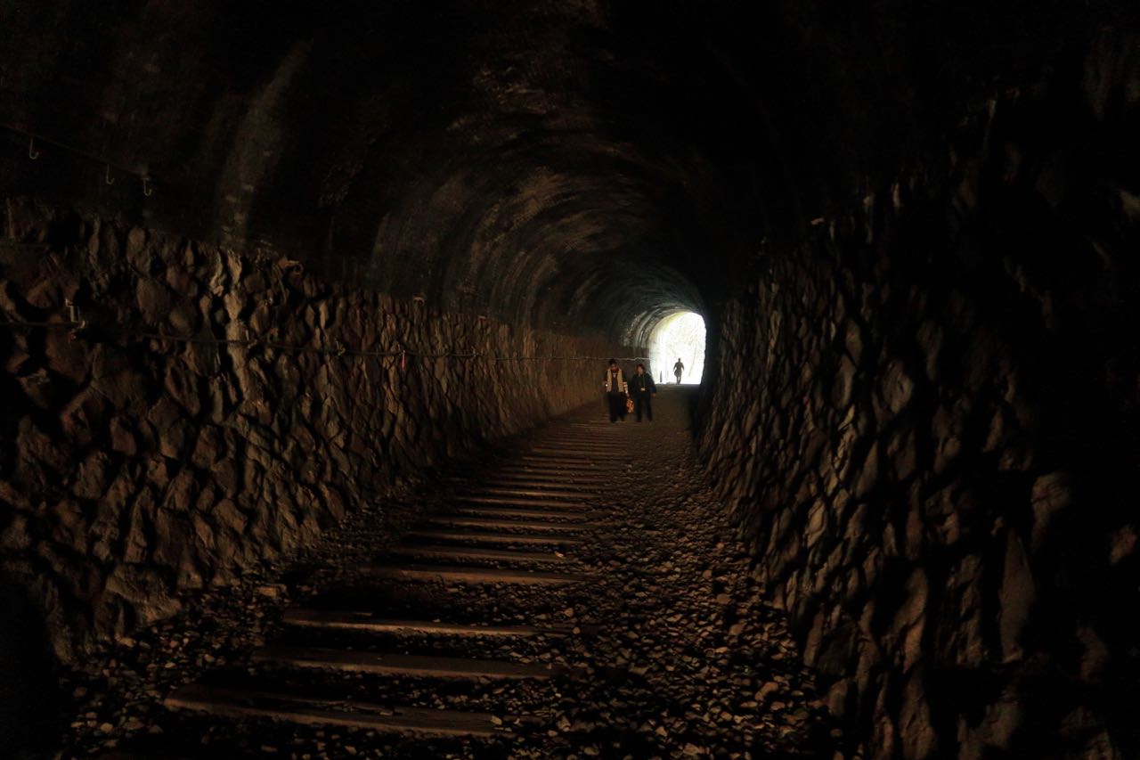 枕木の後を辿ってゆくとトンネルに遭遇。真っ暗なので、懐中電灯なんかを持ってないと、歩くのに難儀する。私はスマホで凌いだ。 ^^;