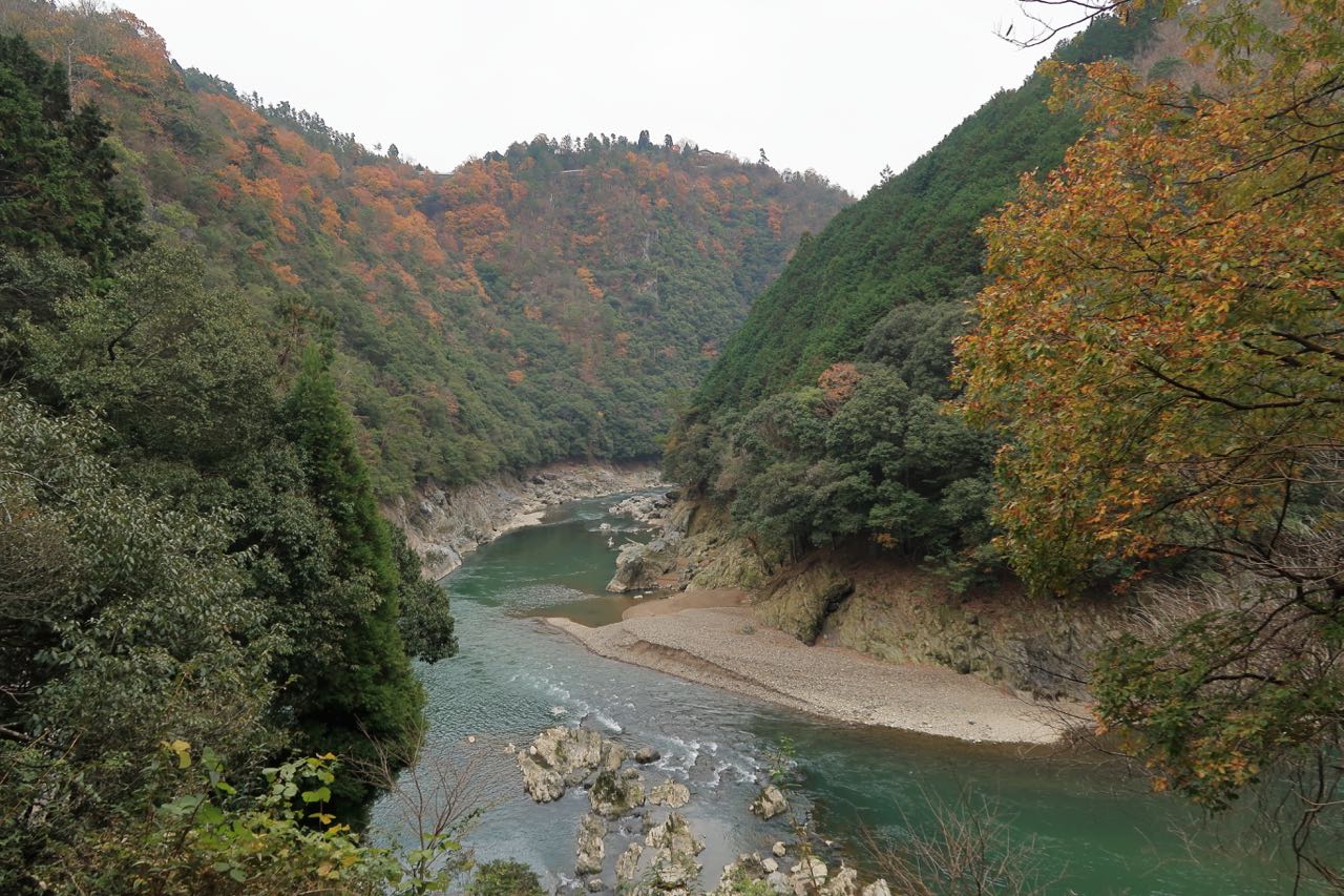 とろっとろの蕎麦湯をいただき、幸せに満たされたところで、いざ、保津峡へ。