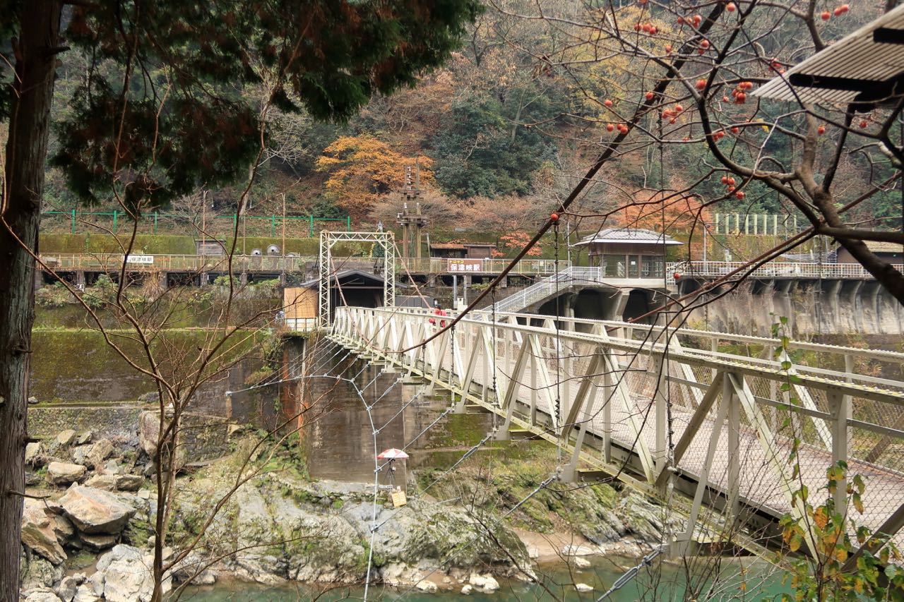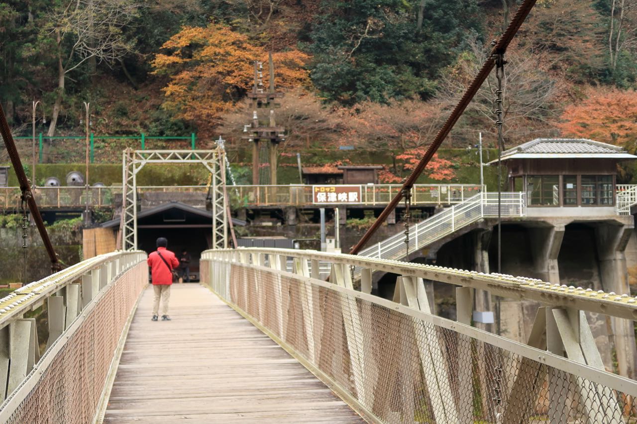 トロッコ保津峡駅まで戻ってきた。うっ…苦手な吊橋だ…。 ^^;