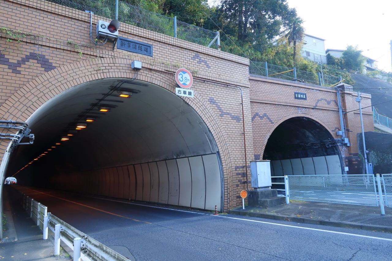 レンガ張りのトンネルが珍しくて、パシャり。吉浦隧道、新吉浦隧道だそうな。そろそろ目的の横須賀だ。