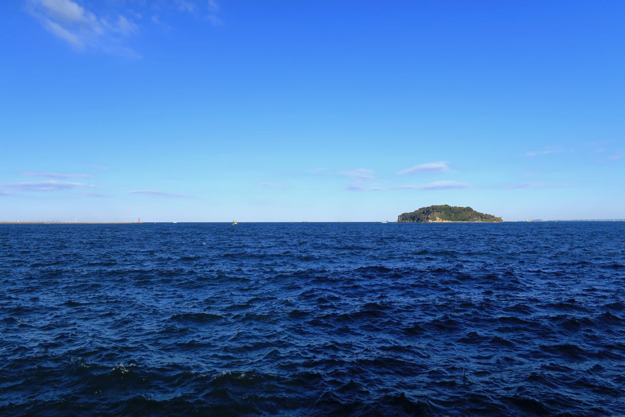 うみかぜ公園到着。海に浮かぶのは無人島の猿島。とってものどかな雰囲気の海辺の公園で、自衛隊艦があるとは思えない。どうやら行くべき場所は、もう少し手前だったようだ。 ^^;