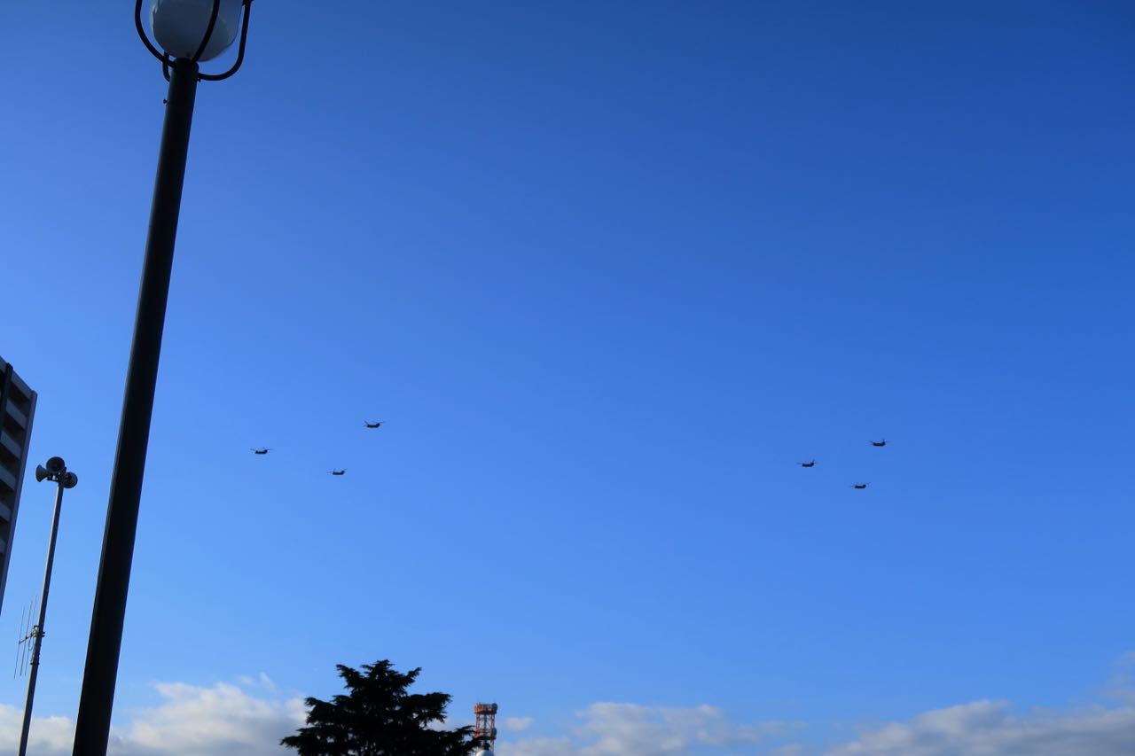 ヘリが6機。何かあったのかと心配になるけど、周りの人たちの反応は薄い。基地があるところでは、日常なのだろうか?