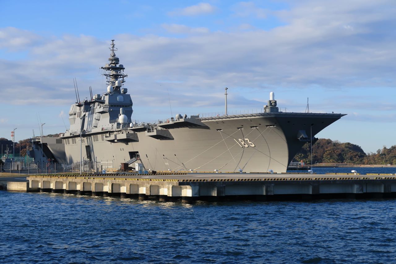 海上自衛隊の護衛艦 いずも だそうな。か、カコイイ〜! \(^o^)/ 乗員500人ぐらいらしい。一方のロナルド・レーガンは、5,000人ぐらいらしいので、さぞかし大きいに違いない。