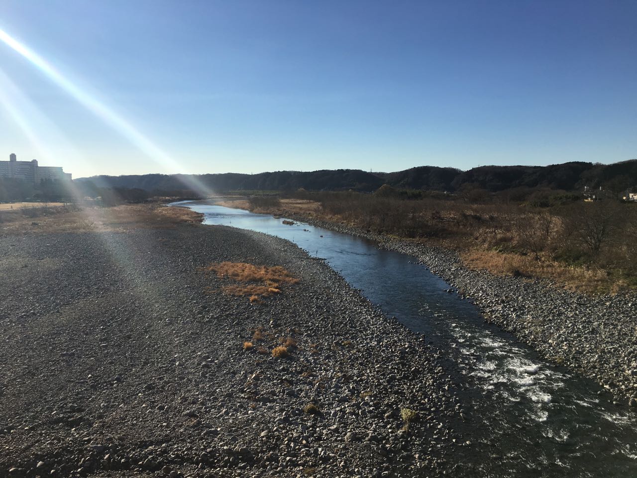 サイクリングロードを終えて、睦橋通りから見た多摩川下流。