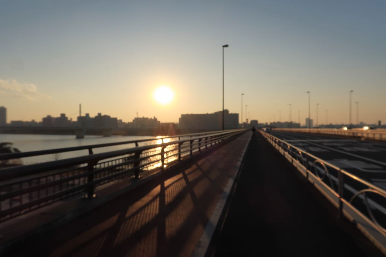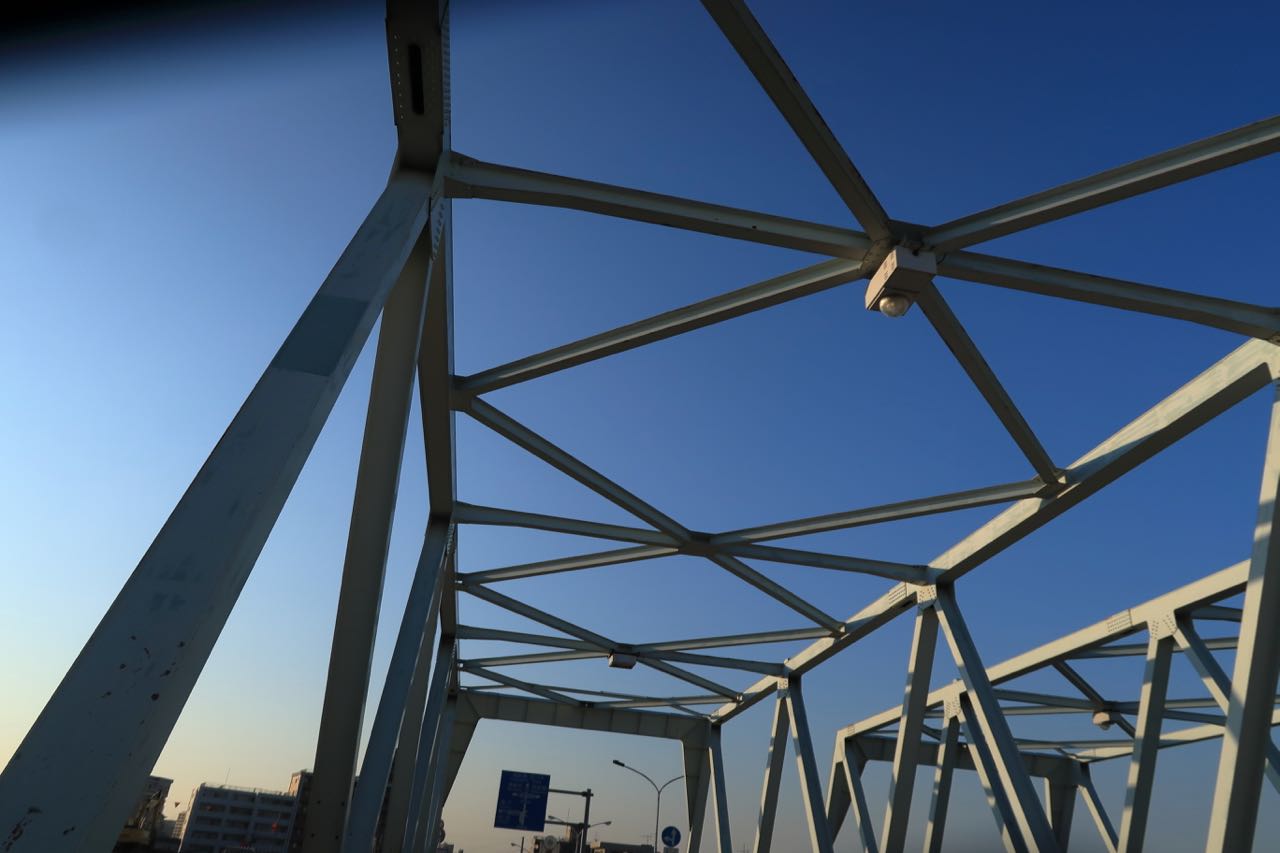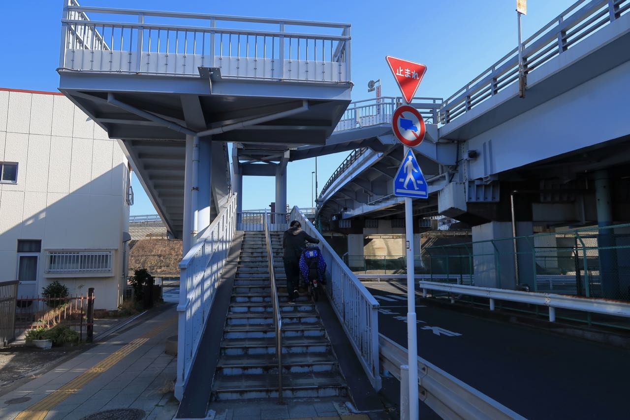 荒川を超える橋は軽車両通行止めになってて通れない。しょーがないので、歩道橋を進んでゆく。