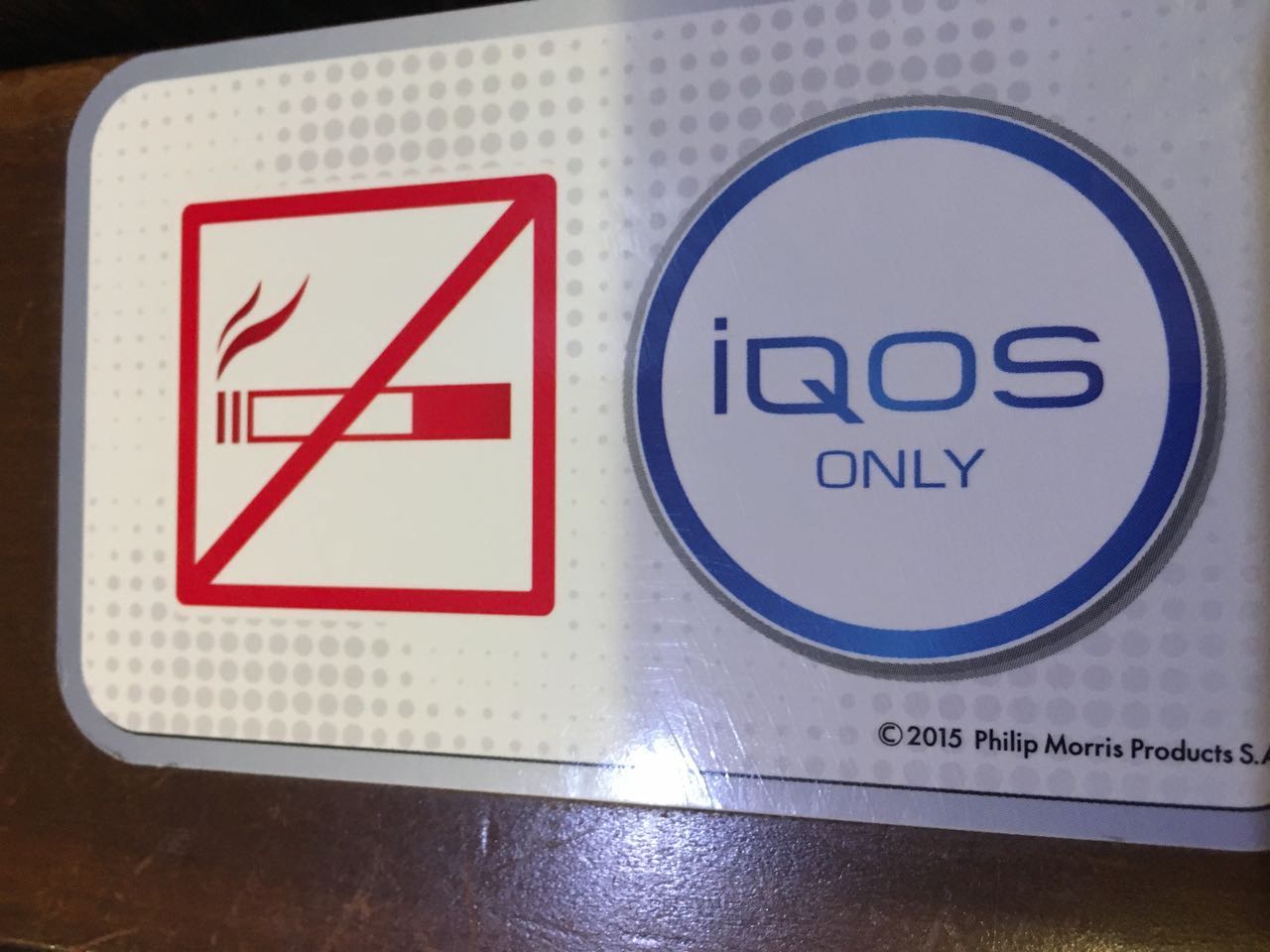 お店に入ってテーブルに案内されると、これが目に入った。 iQOS は OK らしい。何でもかんでも禁止するより、匂いが出ないなら OK ですよ、ってゆーのに好感が持てる。 ^^