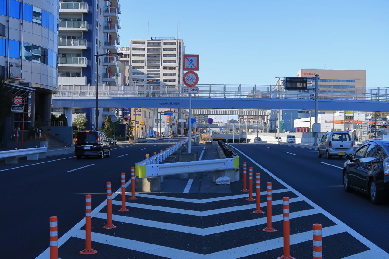 復路の国道14号線でトラップにかかってしまった。 (><) 軽車両通行止の標識があるのだけど、分岐が始まるのはずっと手前。「ここまで来て今更? ^^;」と苦笑いしつつ、左側へ移動中…。