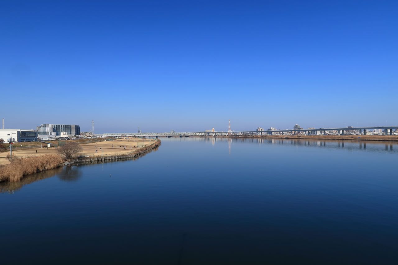 荒川を超える橋の上より。なかなか爽快な感じ。 ^^