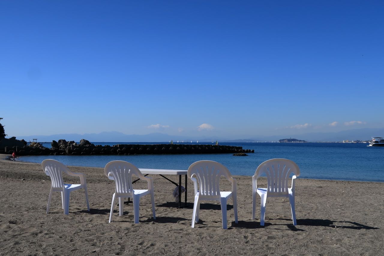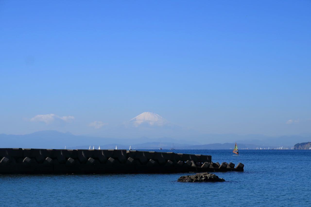 いつの間にやら逗子市を抜けて、葉山町に入っていた。向こうに富士山が見える。