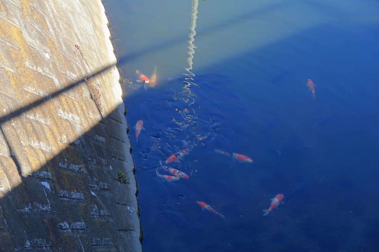 カフェ・オニオン の横の小川では、鯉に餌をやってるおっちゃんがいた。せっかくなので、パシャり。