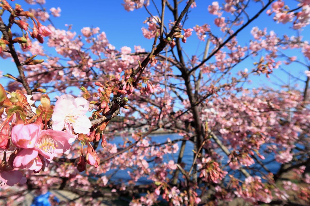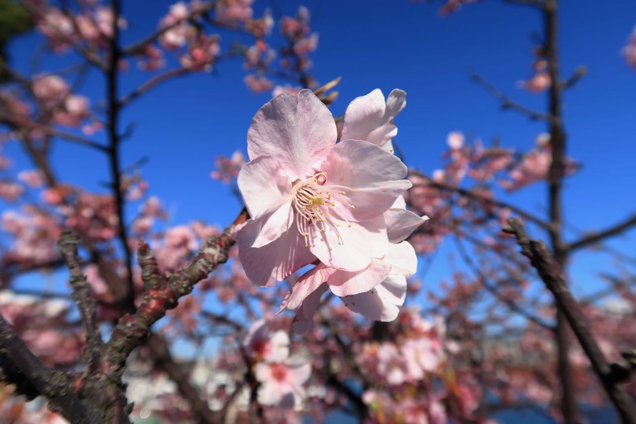 河津桜というそうな。二月に入ったばかりで、まさか桜を観られると思ってなかったので、ちょっとびっくり。