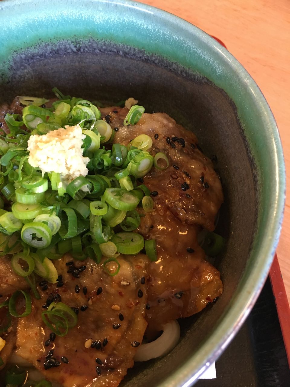 二日目に頼んだのは、豚生姜焼きぶっかけうどんのヒヤなんだけど、ものすごくコシが強い。香川県まで行かずに、ここまでしっかりとした本格讃岐うどんを食べられるとは! ^^