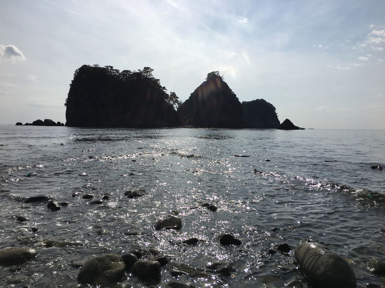到着したのは 14:00 頃だったかな? ^^; もう、干潮時刻をかなり過ぎてた。間に合ってれば、向こうに見える島(?) まで、歩いて渡れたらしいんだけど、まあ、それはまた次の機会の楽しみにとっておこう。 ^^