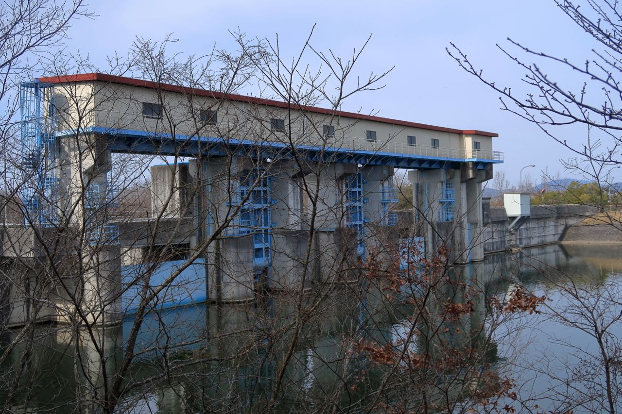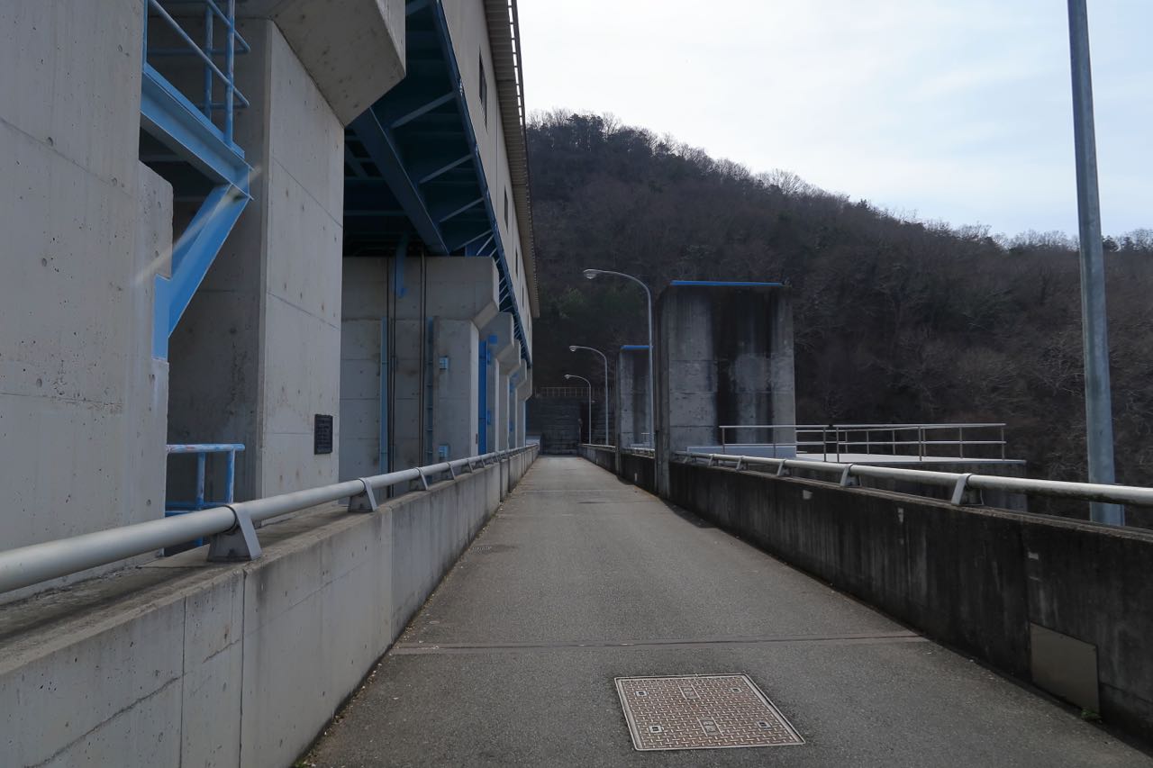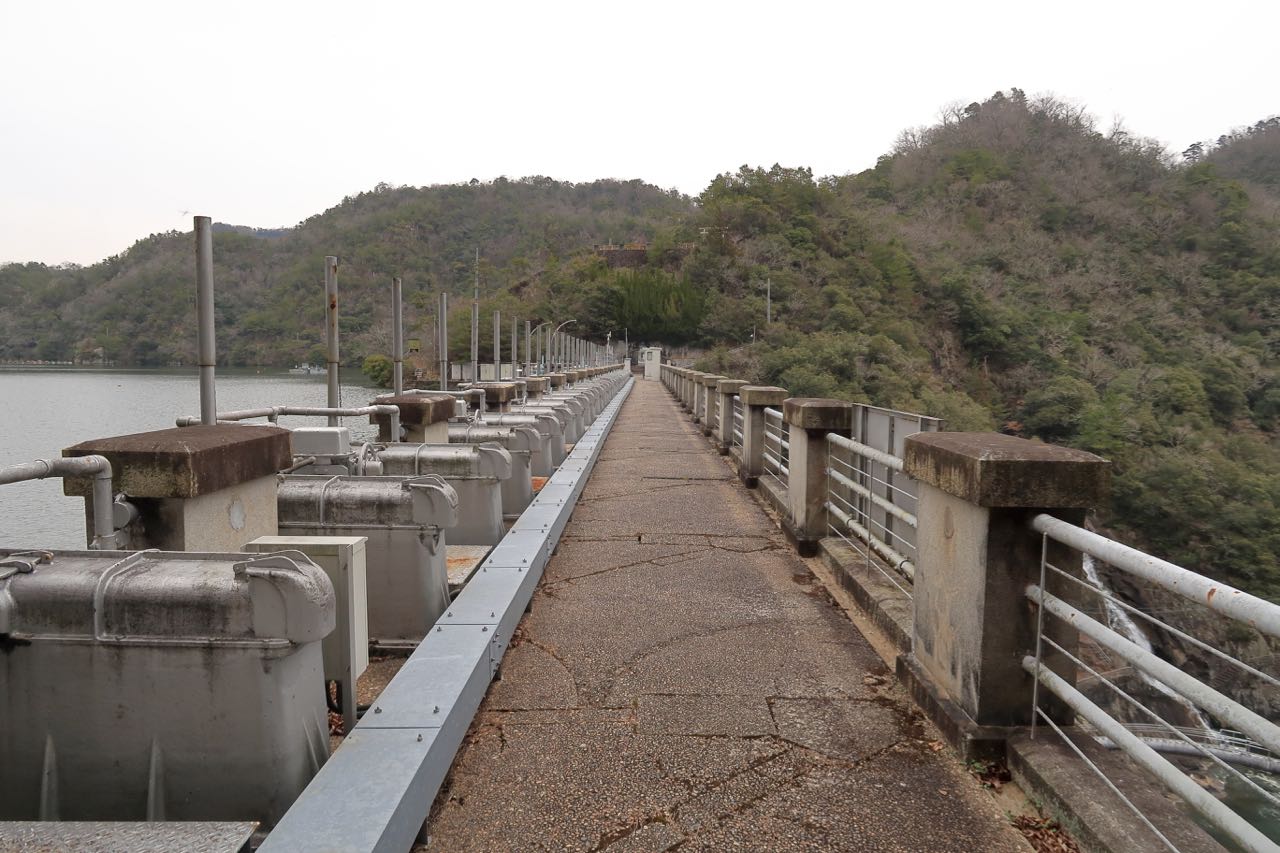 残念ながら天端は渡れない。詳しくはわからないが、おそらくゲートの調整ハンドルが並んでいるものと思われる。