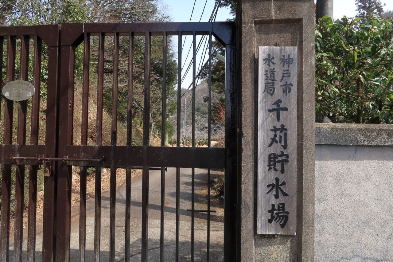 千刈貯水場に着くと、門が閉まっていた。付近を探すと歩道があったので、自転車を止めて歩いて進んだ。