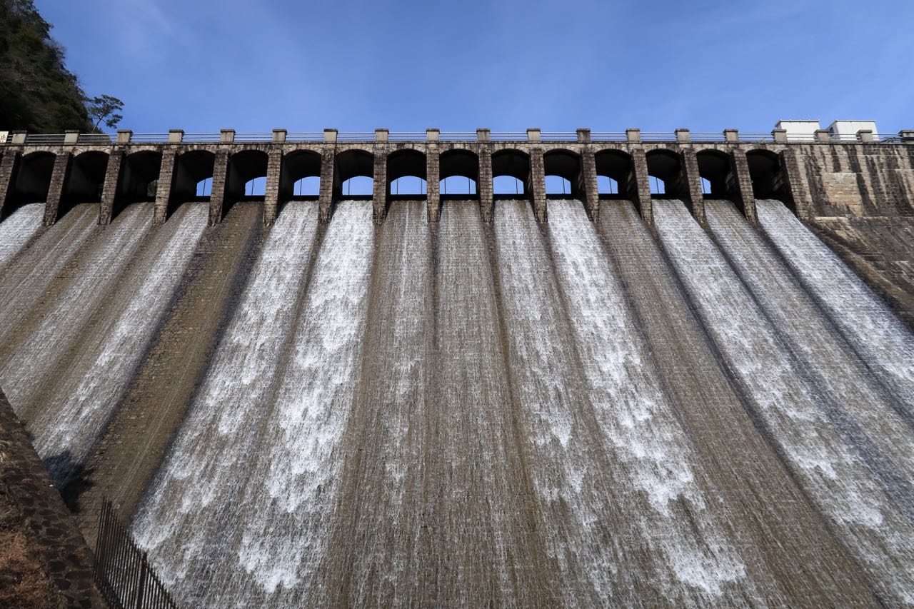 作られたのは大正時代。重力式粗石モルタル積ダムというタイプだそうで、コンクリート技術が発達する前のものなのだろう。現代においては、それが歴史的芸術性を醸し出している。