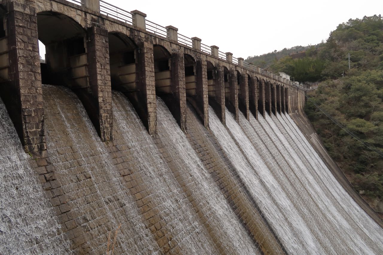 水が堤体を流れる様は、自然の滝に勝るとも劣らず、とても美しかった。