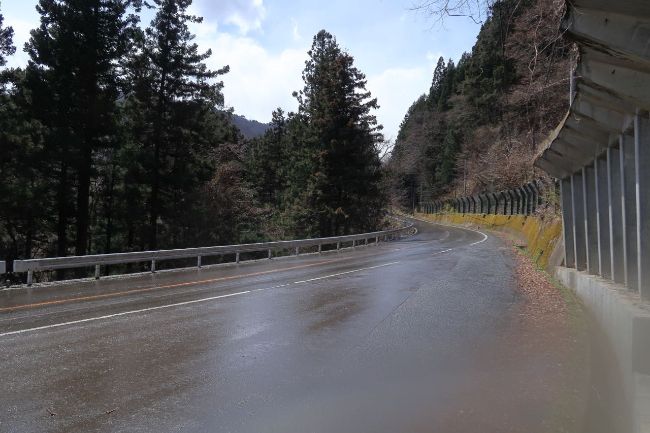 路面はウェットだけど、気温さえ問題なければ、自転車には乗れる。ここからはバビューンと下った。