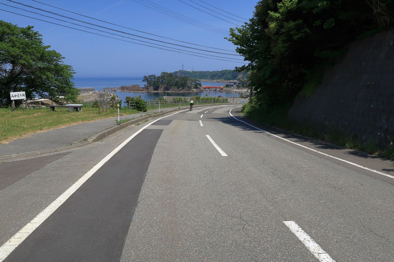 海沿いの平坦路を順調に走り抜けてゆく。南西の風なので、この辺りから緩い向かい風の中を走ることになる。