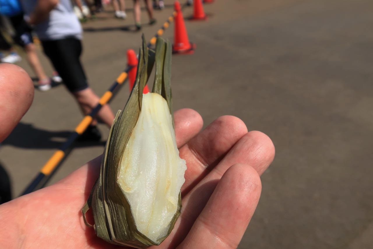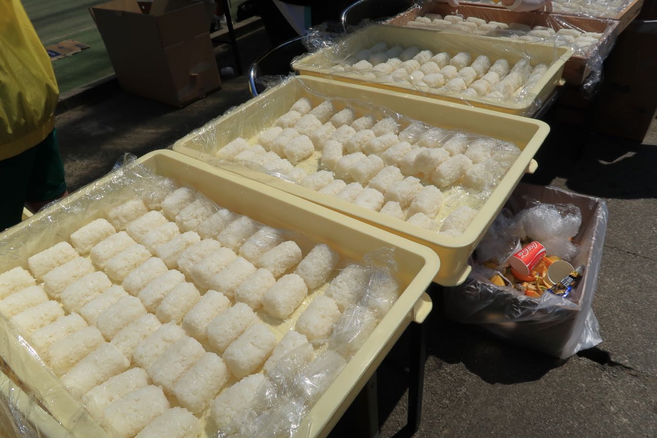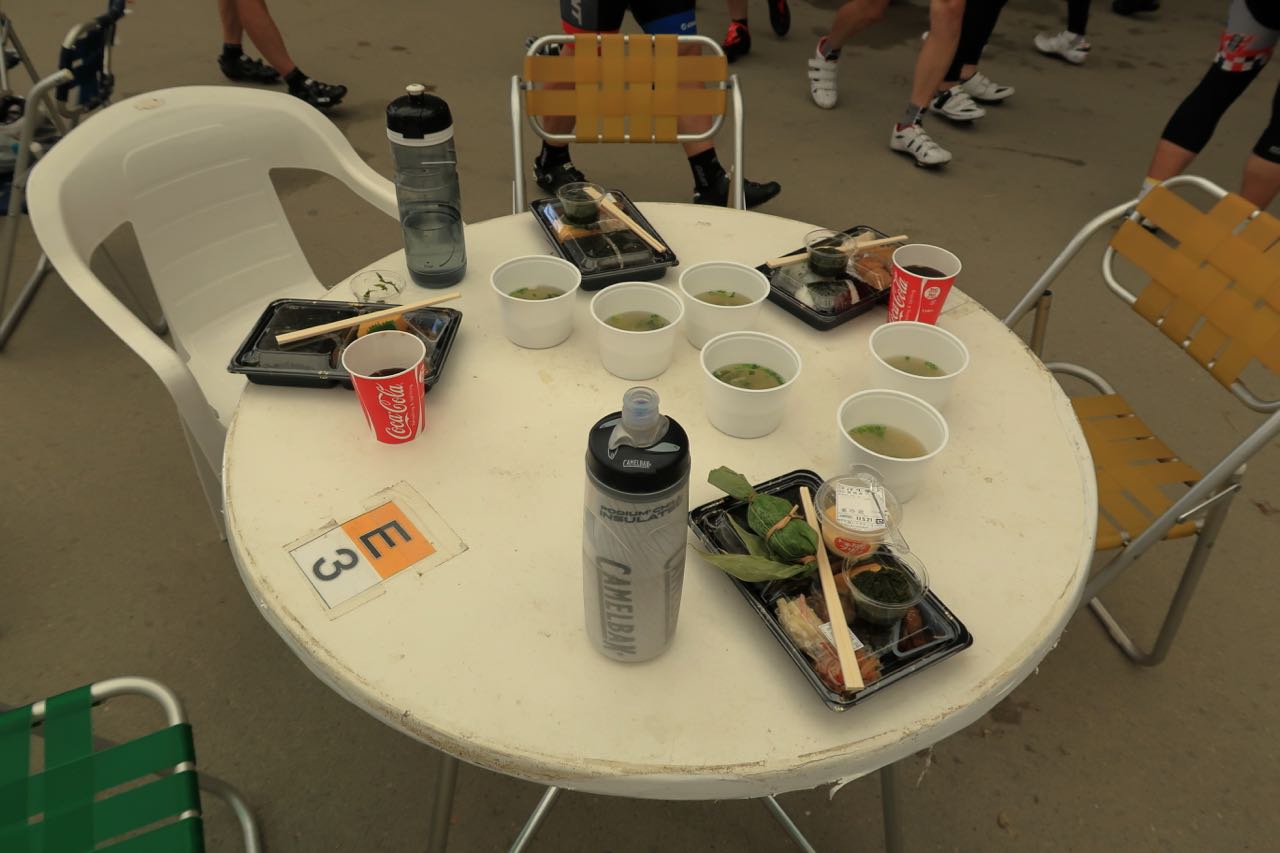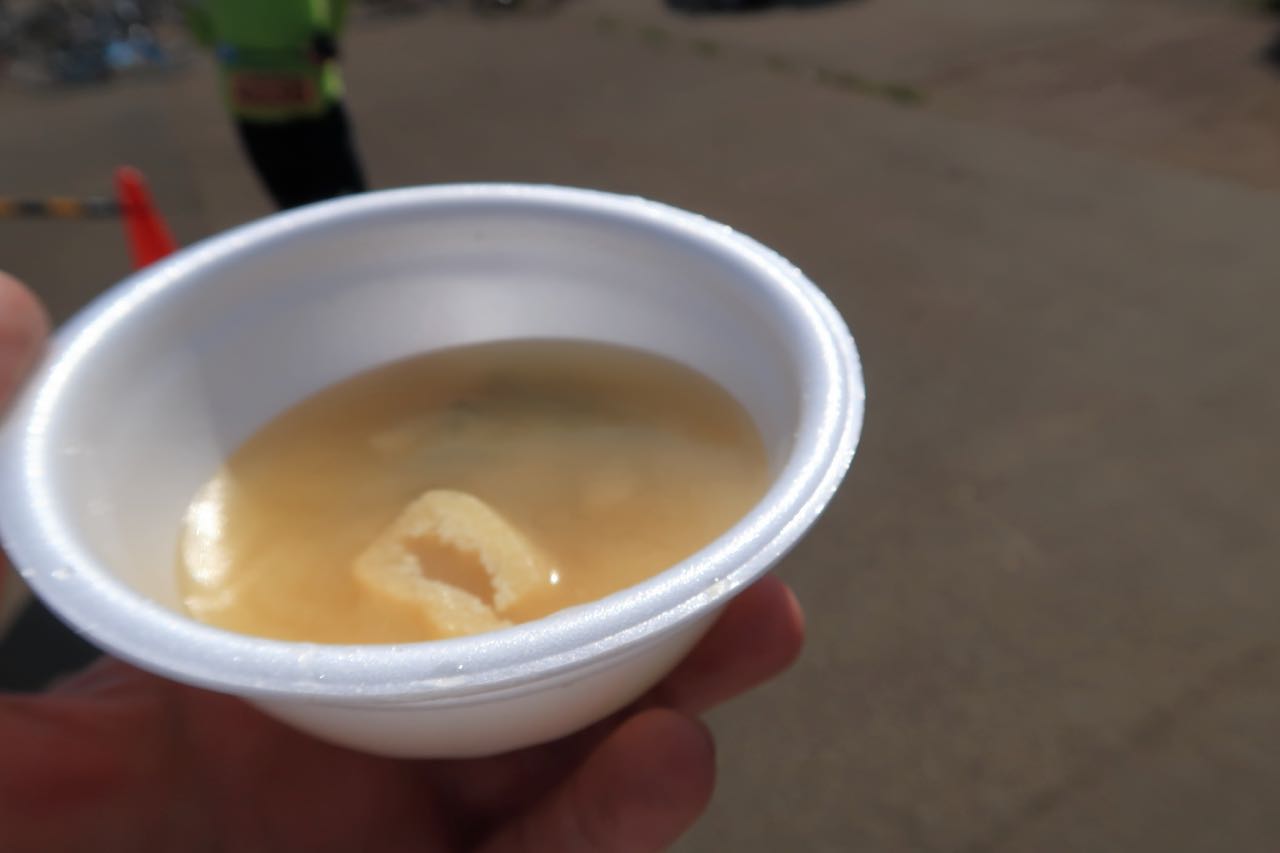 どこのエイドでも、おにぎり、バナナ、オレンジ、コーラ、ポカリスエット、そして水は充実していた。地元の方々の支援のおかげで、 210Km の長丁場を走るというのに、補給食はなくても大丈夫だし、ボトルも一本で十分だ。 ^^
