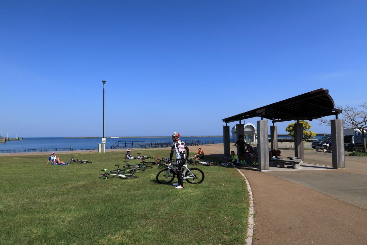 実は「淡路島も行ったことあるけど、あそこは車が多いからねぇ〜。佐渡はぜんぜんですよ。」と言われてた。アワイチは十分に車の少ないコースだと思っていたのだが、佐渡島を経験した後だと、「う〜ん、確かに 佐渡ロングライド に比べたら、淡路島は車が多いかも…。」と思ってしまった。