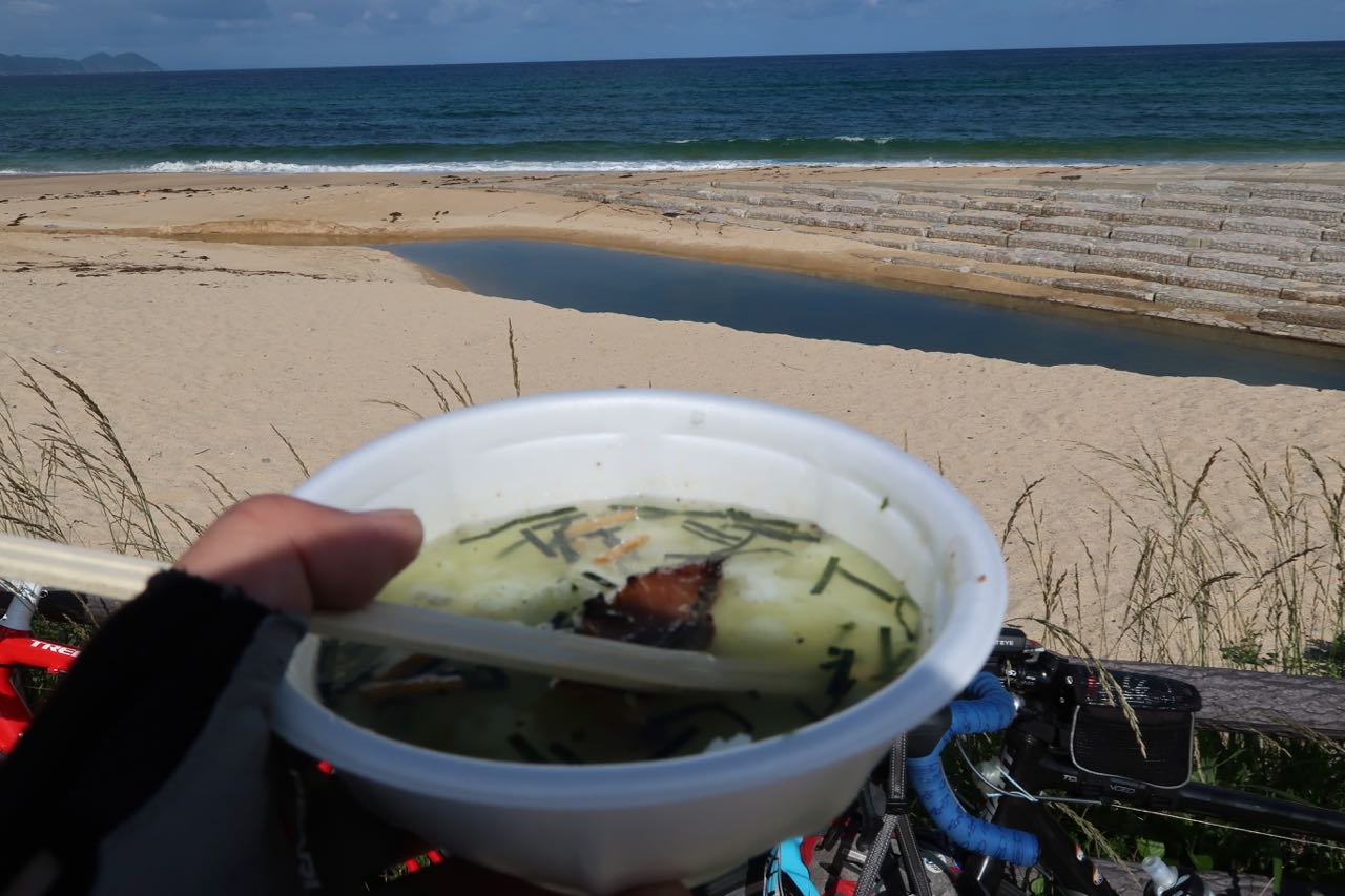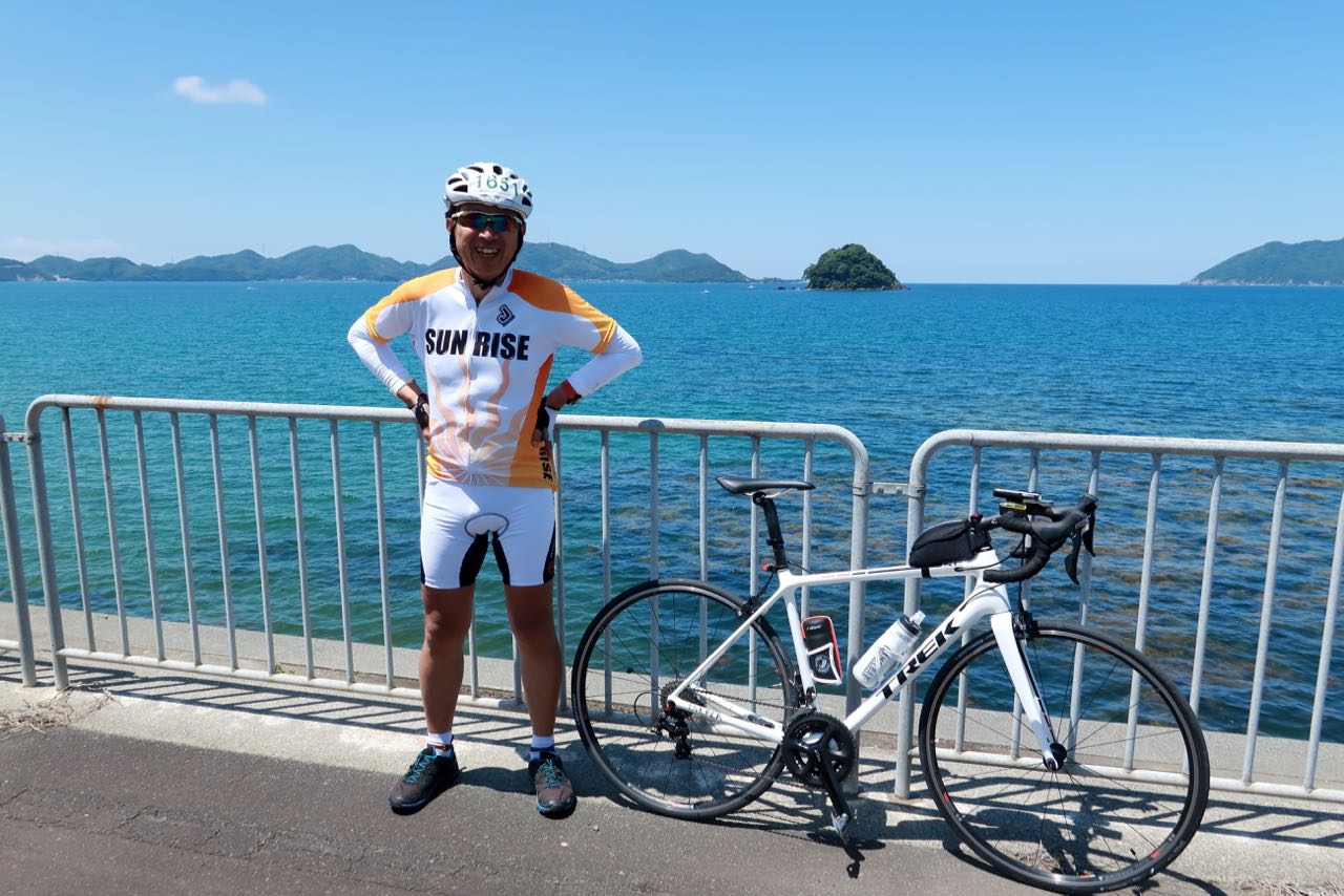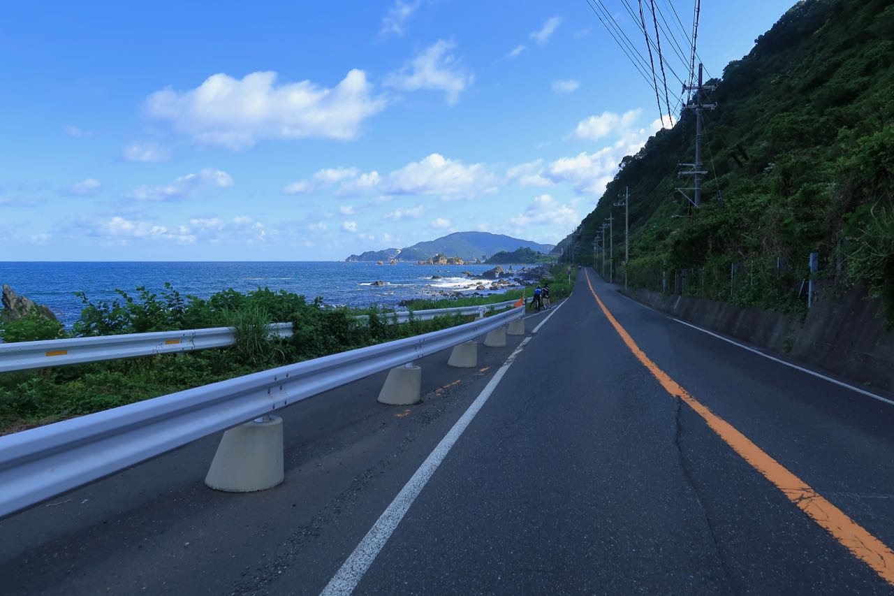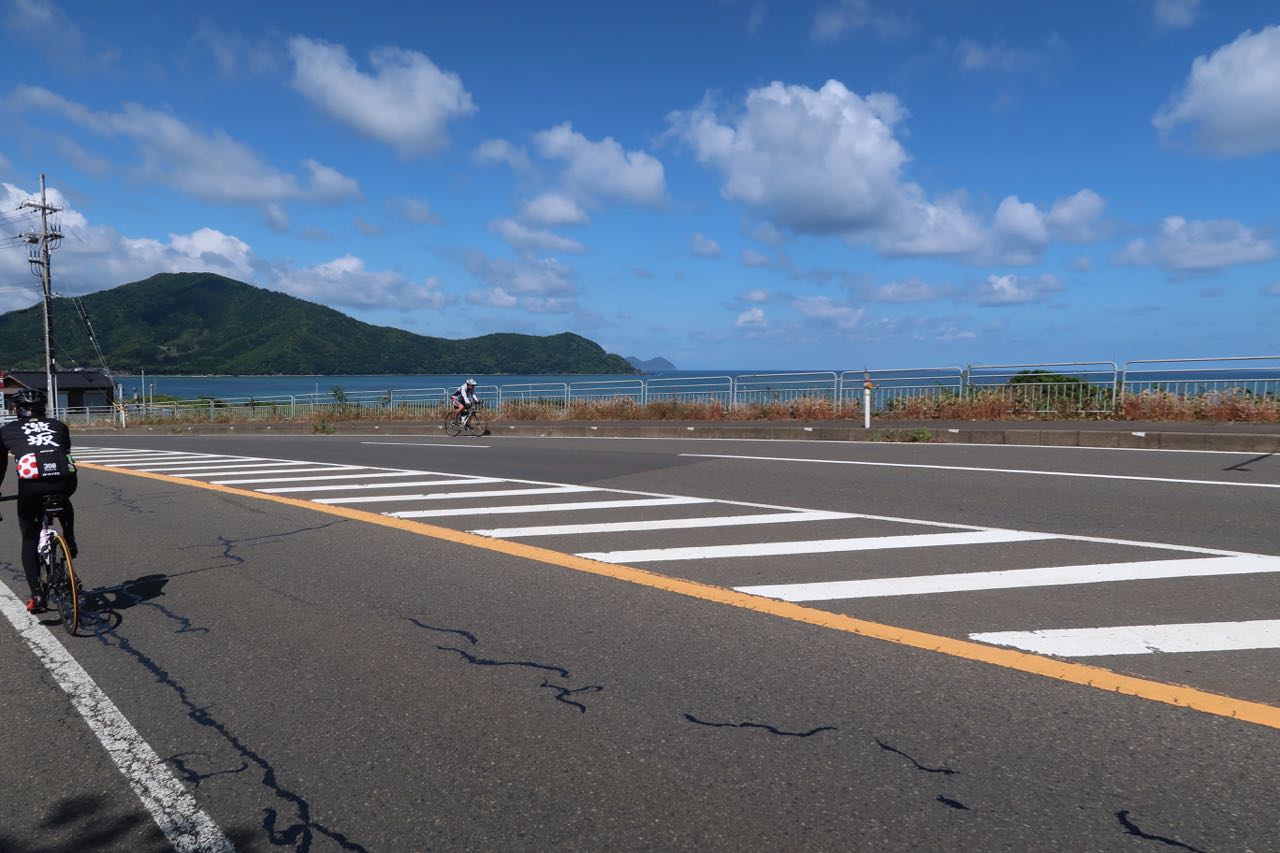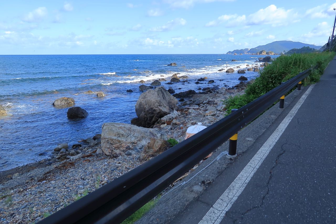 残りは 30Km ほどだっただろうか? 青空の下、若狭湾沿いの道を走る。
