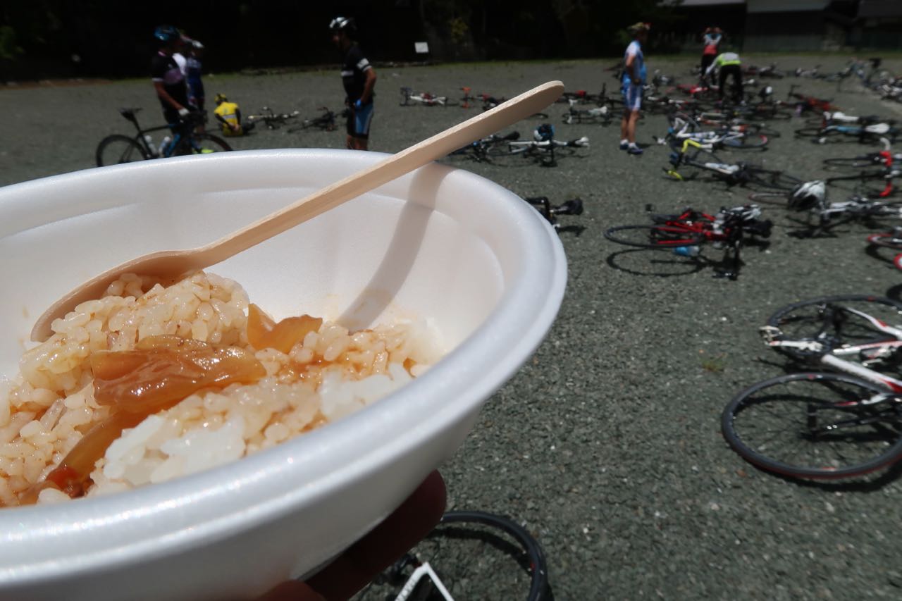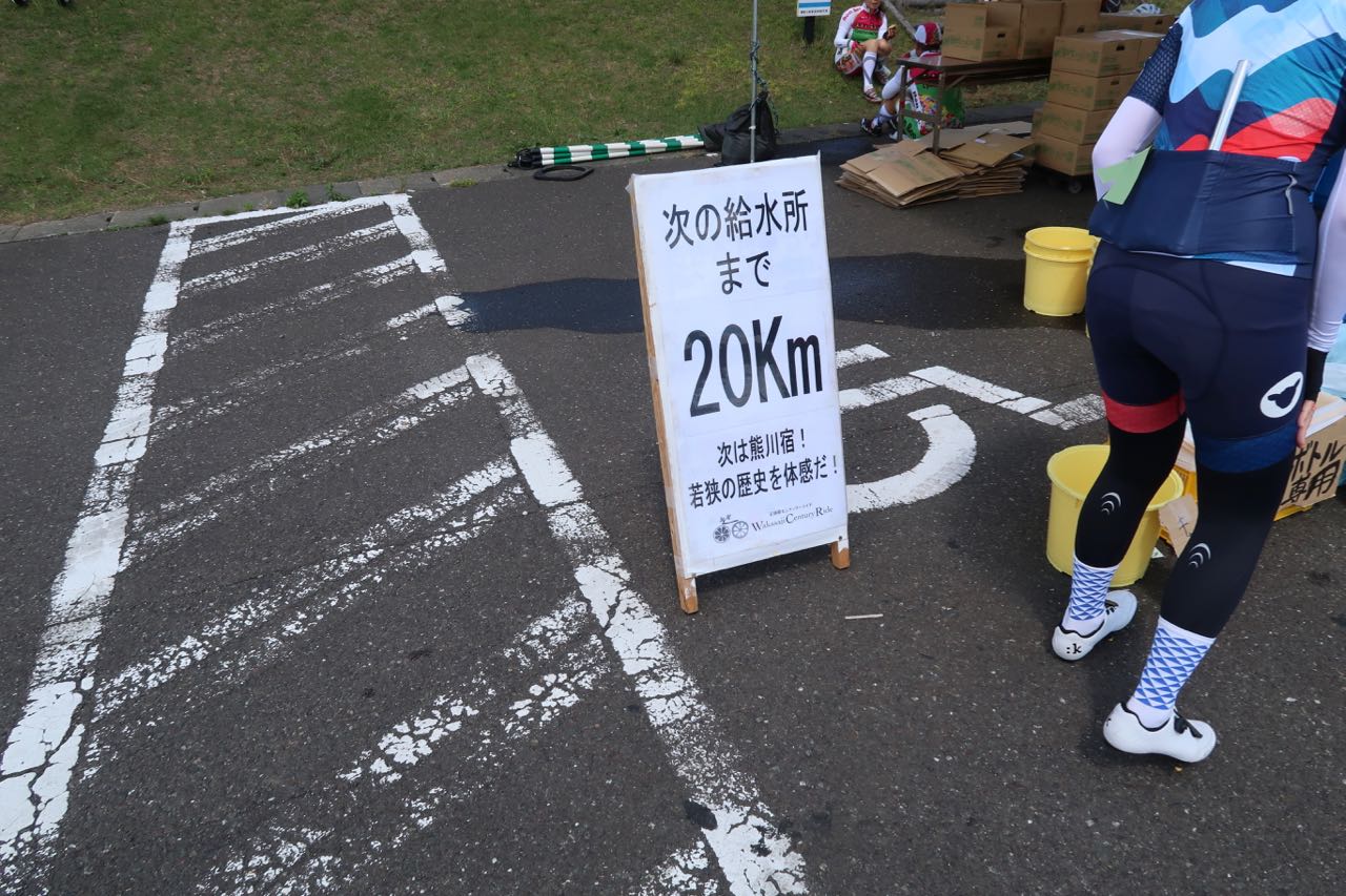 若狭路センチュリーライド は、これまで参加した他のイベントに比べて、エイドの数が少なめで、距離も長いようだ。日頃、エイドなんてないロングライドで遊んでいるので、栄養補給は大切にしているつもりなんだが、よろしくない方向にイベント慣れしてしまっていたようだ。 (><)