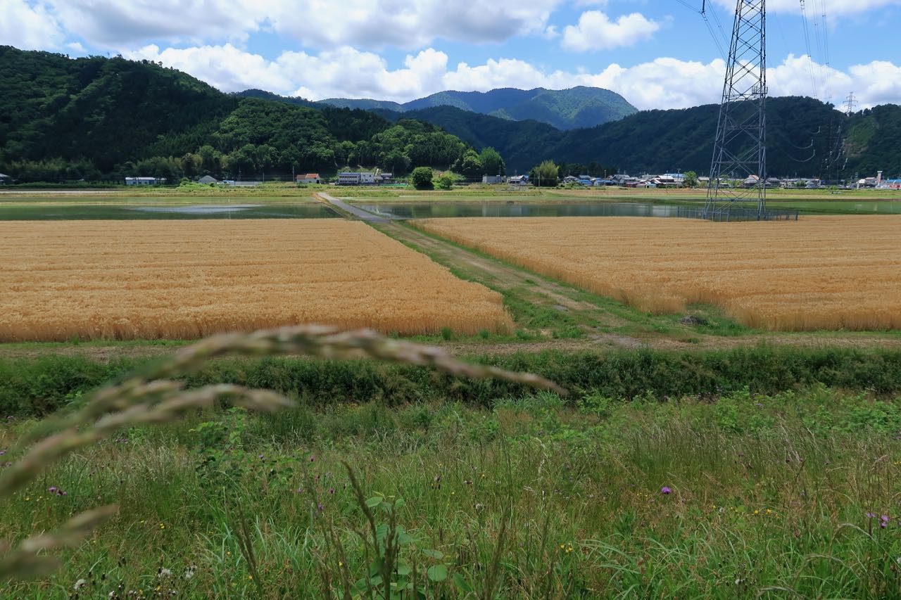 田園地帯だと思っていたら、黄金色のエリアが。麦かな?