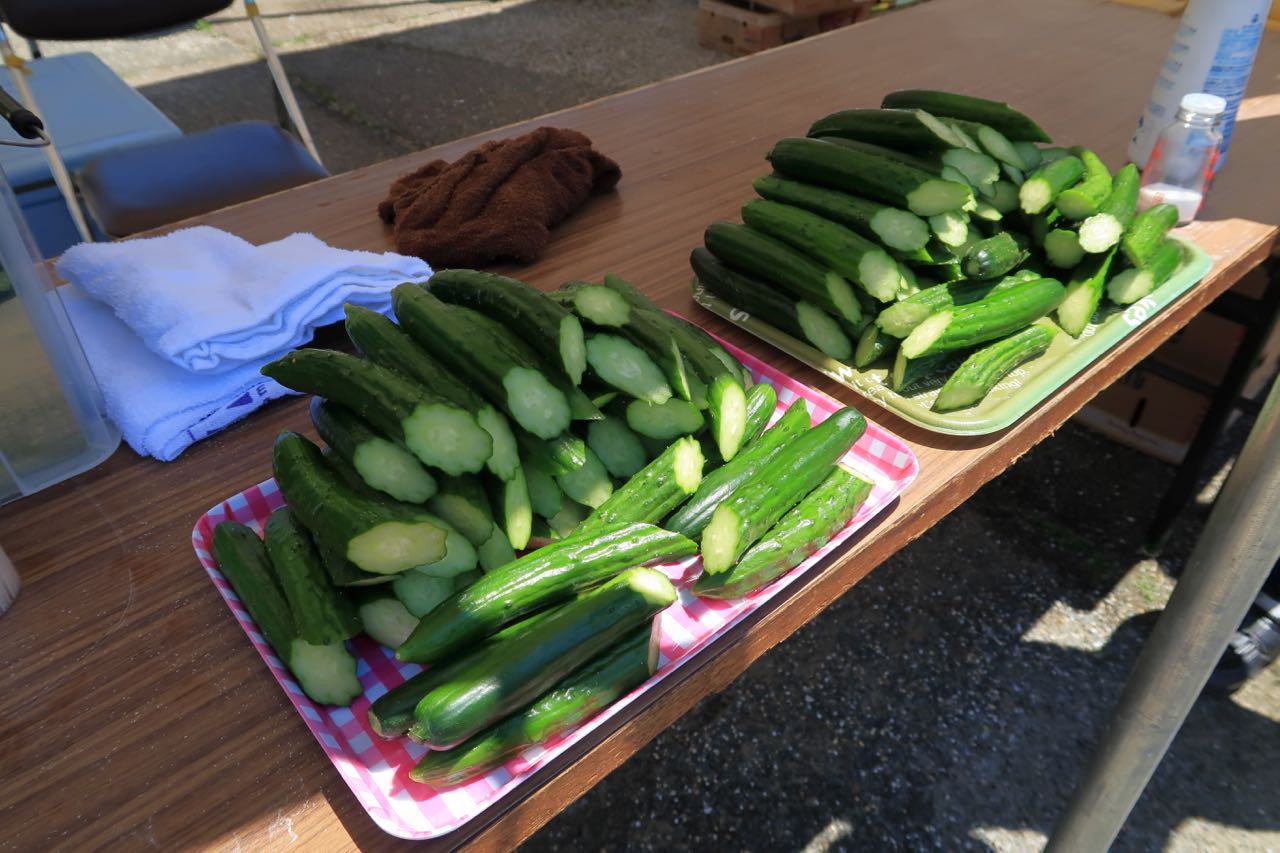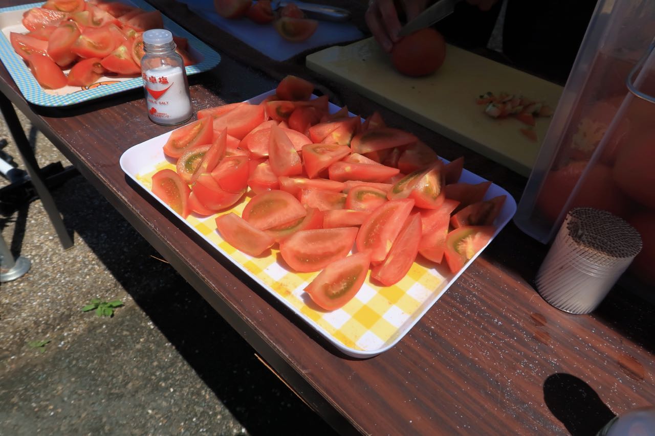 軽く塩を振って食べたきゅうりとトマトが、めちゃめちゃうまい!! ^^ かなり気温も上っていたので、切ったばかりの水々しさがたまら〜ん!! って感じだった。