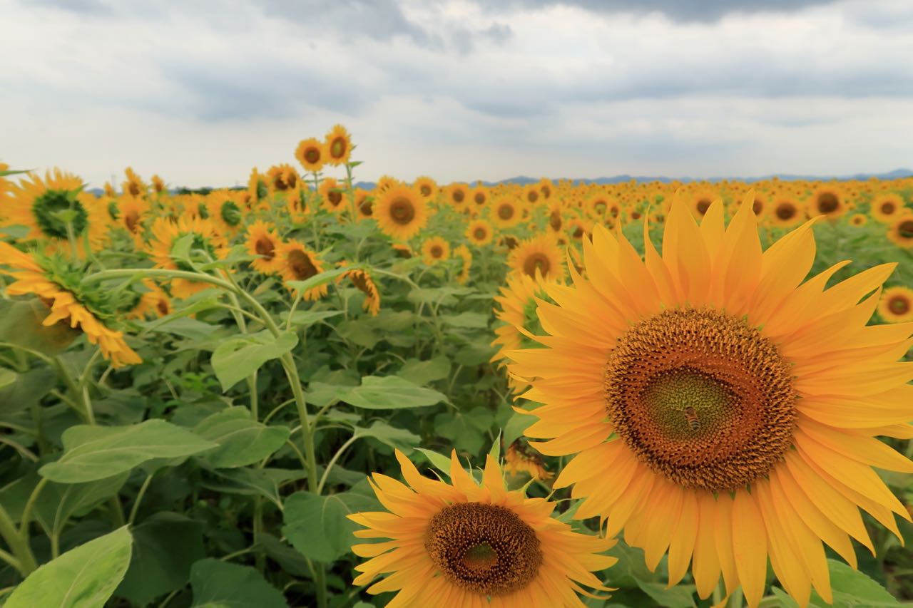 めっちゃ見応えがある。 ^^ ちょうどツール・ド・フランスでもひまわり畑の側を通ってたのを思い出した。 ^^ ミツバチがたくさん飛んでるので、刺激しないように注意しながら、ひまわりを満喫したのであった。