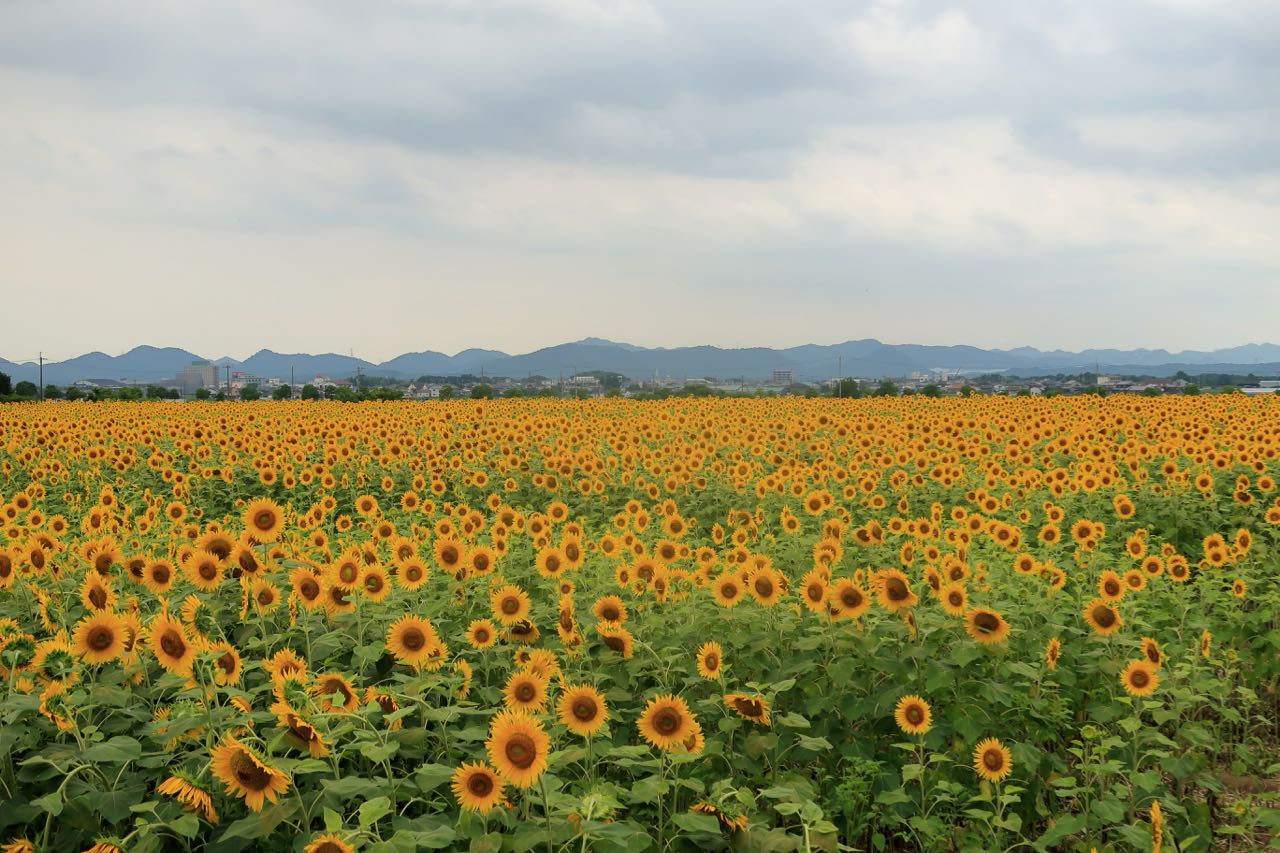 人気のあるスポットのようで、観光客がたくさんいた。なんとか臨時駐車場に車を駐めて、ひまわりを愛でた。