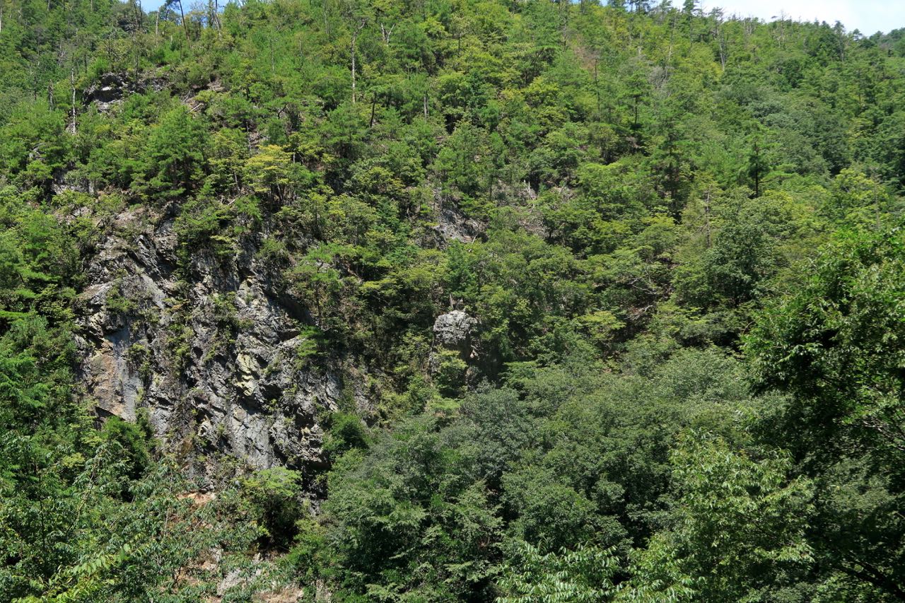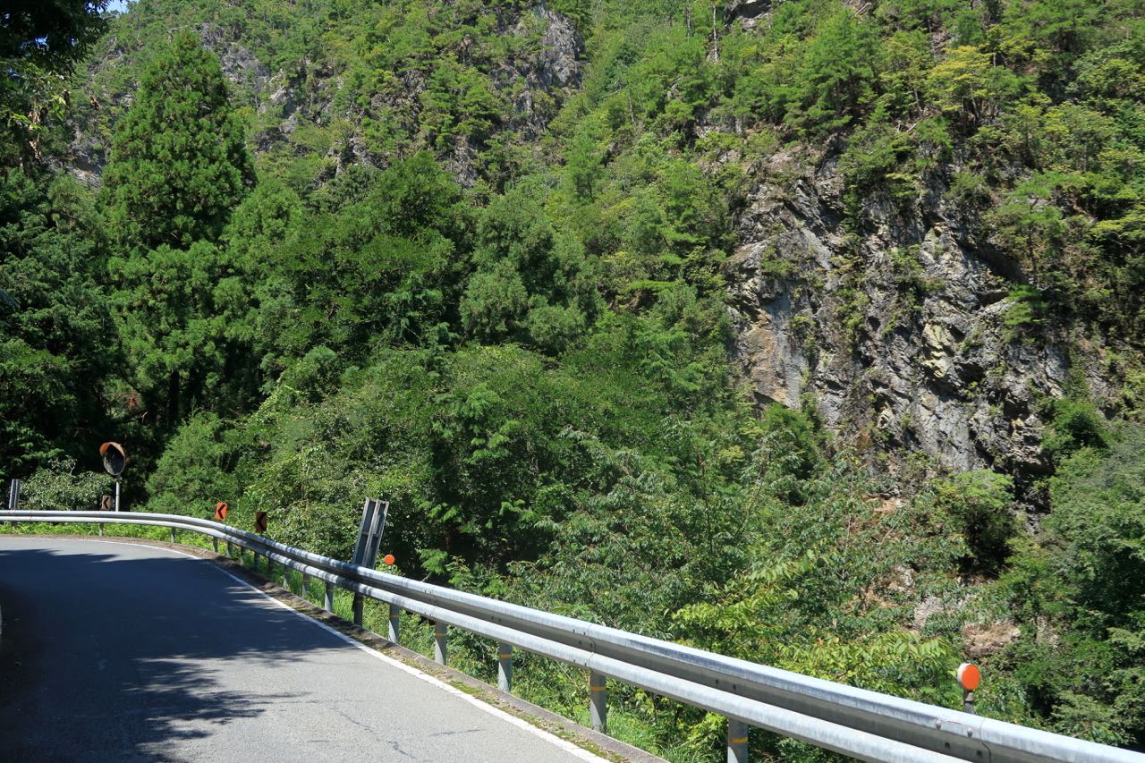 こんな絶景を見ながら、のんびりダウンヒル。なぜかよくわからないけど、こーゆー岩肌の渓谷を走るとワクワクする。 ^^
