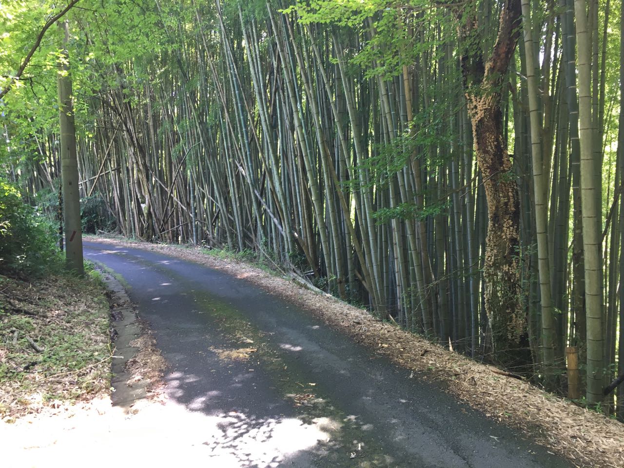初めて通る道で、少しばかりヒルクライムになったけど、車の来ない竹林で、なかなかいい感じの道だった。 ^^