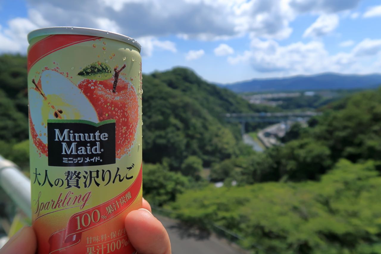 半分ぐらい上ったところで自販機休憩。保津峡駅では、自販機が改札口の中にあって買えなかったので、気分的にはここが折り返しのドリンク補給休憩って感じだ。