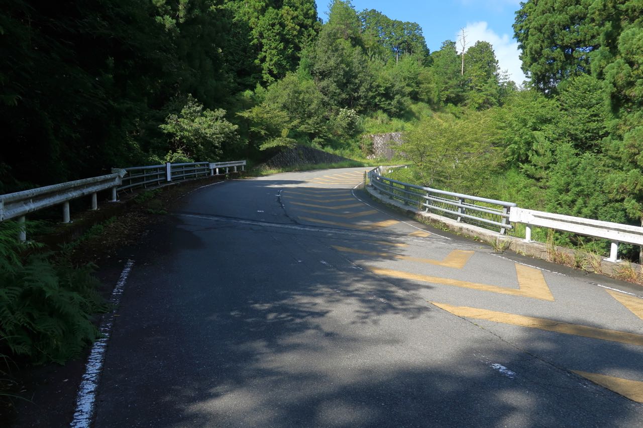"峠" とは、尾根筋の一番低いポイント (わかりやすく言えば、ブラのフロントホックの部分だ。 ^^;) のはずなので、坂の途中にある峠というのは珍しい。二つの山の高低差が大きいと、こーゆーことになるのかもしれないが、走っているとよくわからない。 ^^;