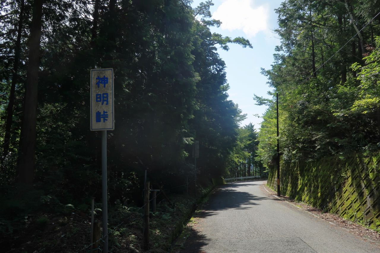 むむむ…。保津峡まで、思ったより遠いし、思ったより、上るぞ? ここはピークを少し過ぎて、下り始めた神明峠。