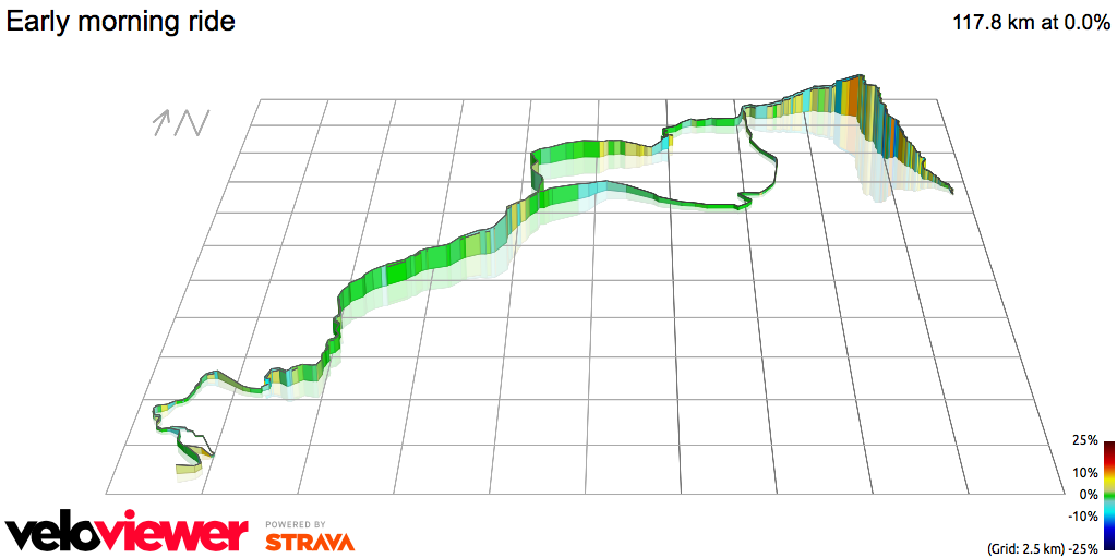気温が高くなるとつらいので、 6:00a.m. に出発。5分ほどして、心拍計とライト類を忘れていることに気付いたけど、諦めた…。 (TT)