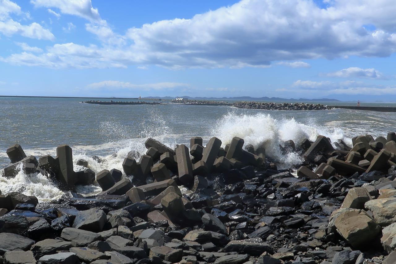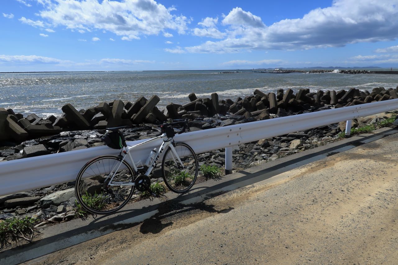 フォトジェニックな場所を探してテキトーに走ってたのだけど、西風がとっても強い。台風は過ぎたものの西風はなかなか強烈で、結局、仙台に着くまでずっと吹き続けていた。