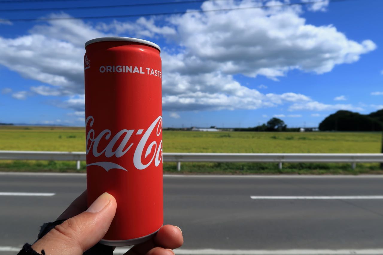 向かい風の中を走り疲れたので、コーラ休憩。野蒜あたりだったかな?