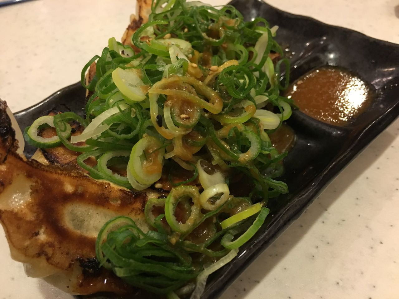 ネギのたっぷりかかった ネギ塩黒豚餃子 も、味噌の効いた餃子のタレで、めっちゃ美味しい。 ^^