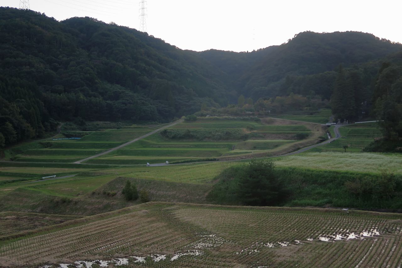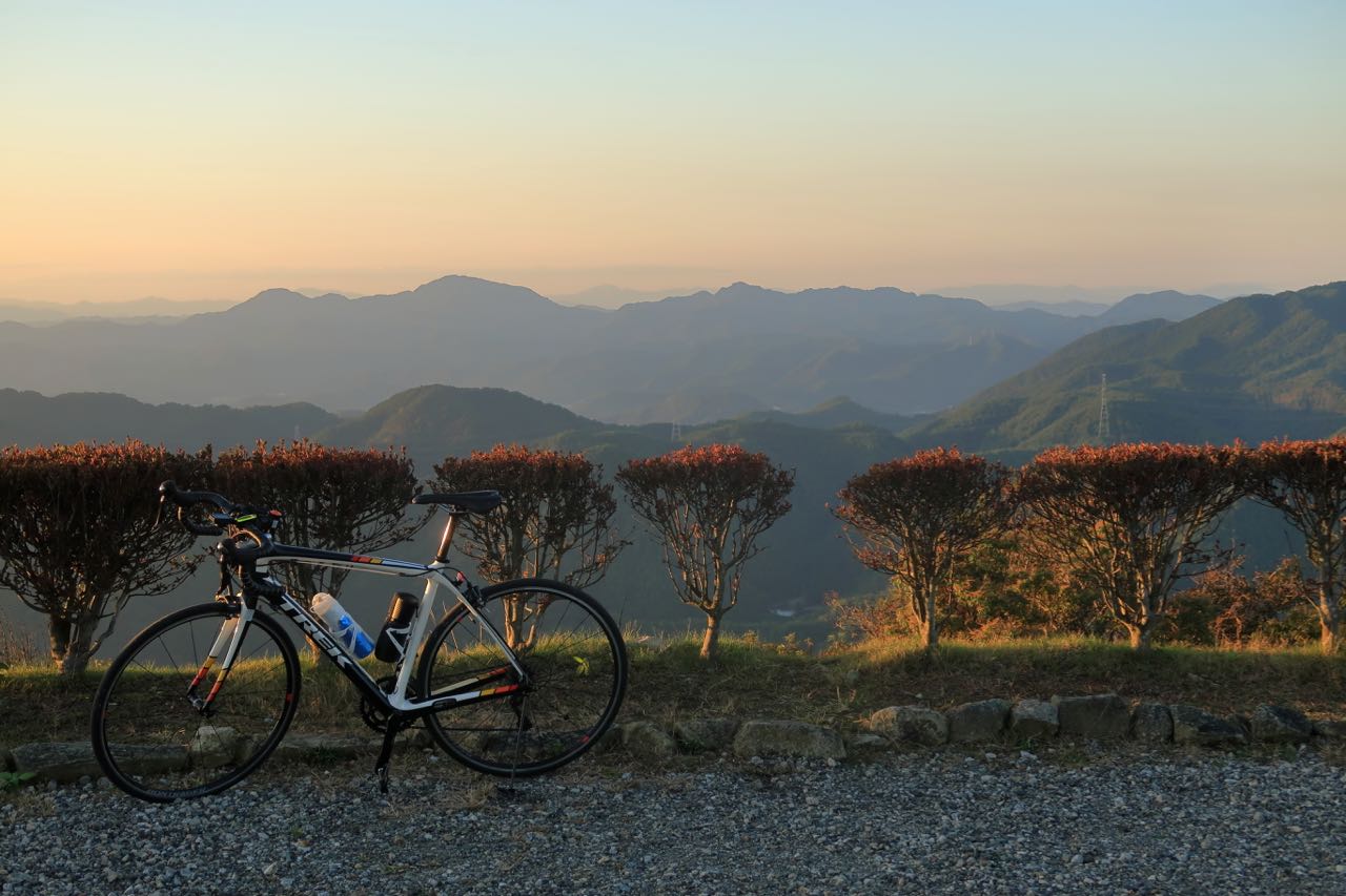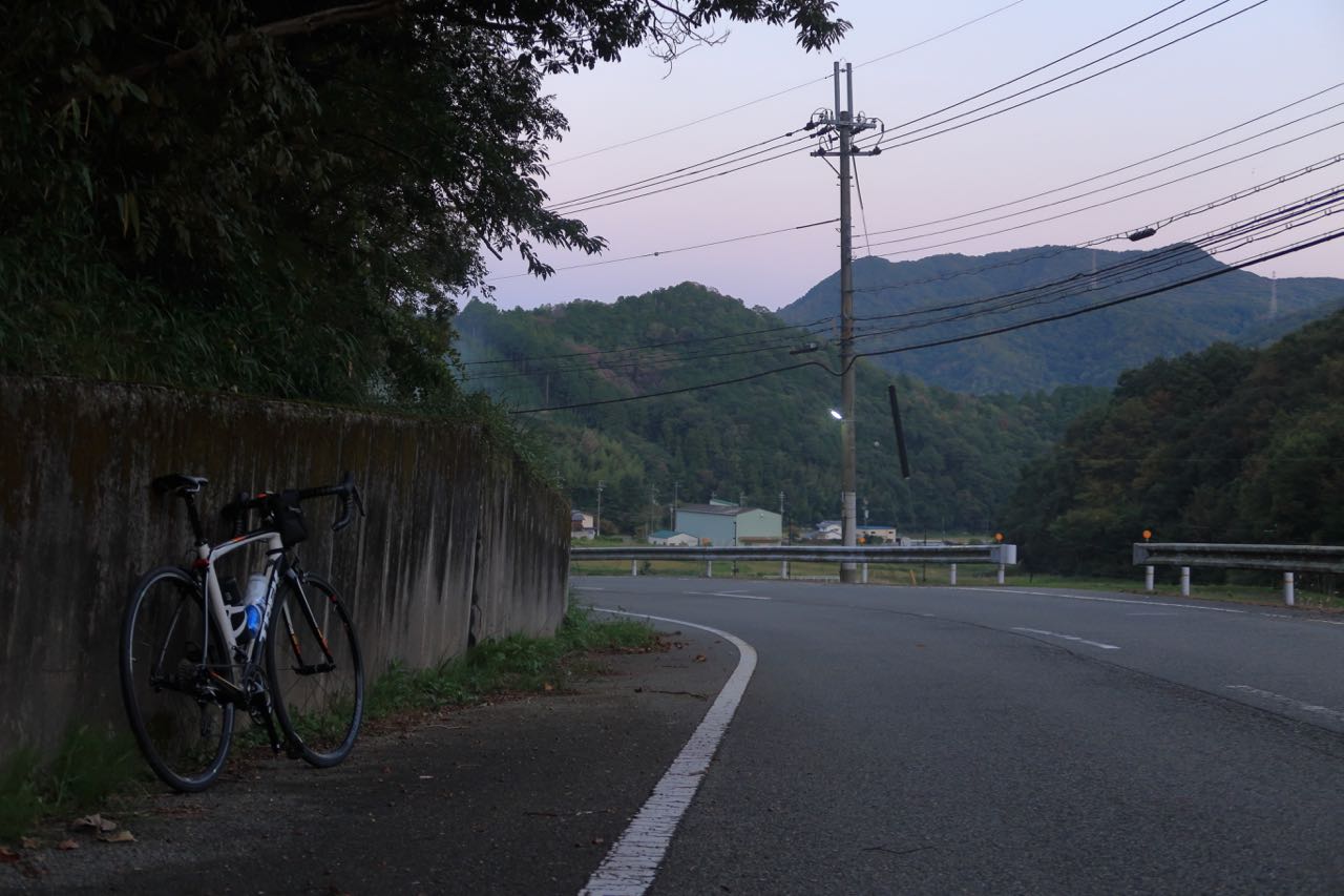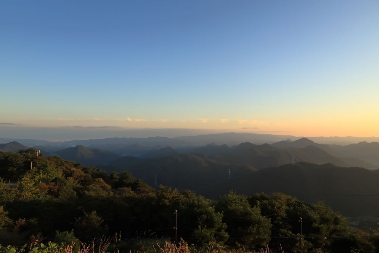 夕日が山に沈むところを観たかったものの、ダウンヒルだけは暗くなる前に済ませたいので、早々に退散。夜走ることは覚悟して出てきたものの、林道激坂でガードレールなしのダウンヒルだからね。 ^^;