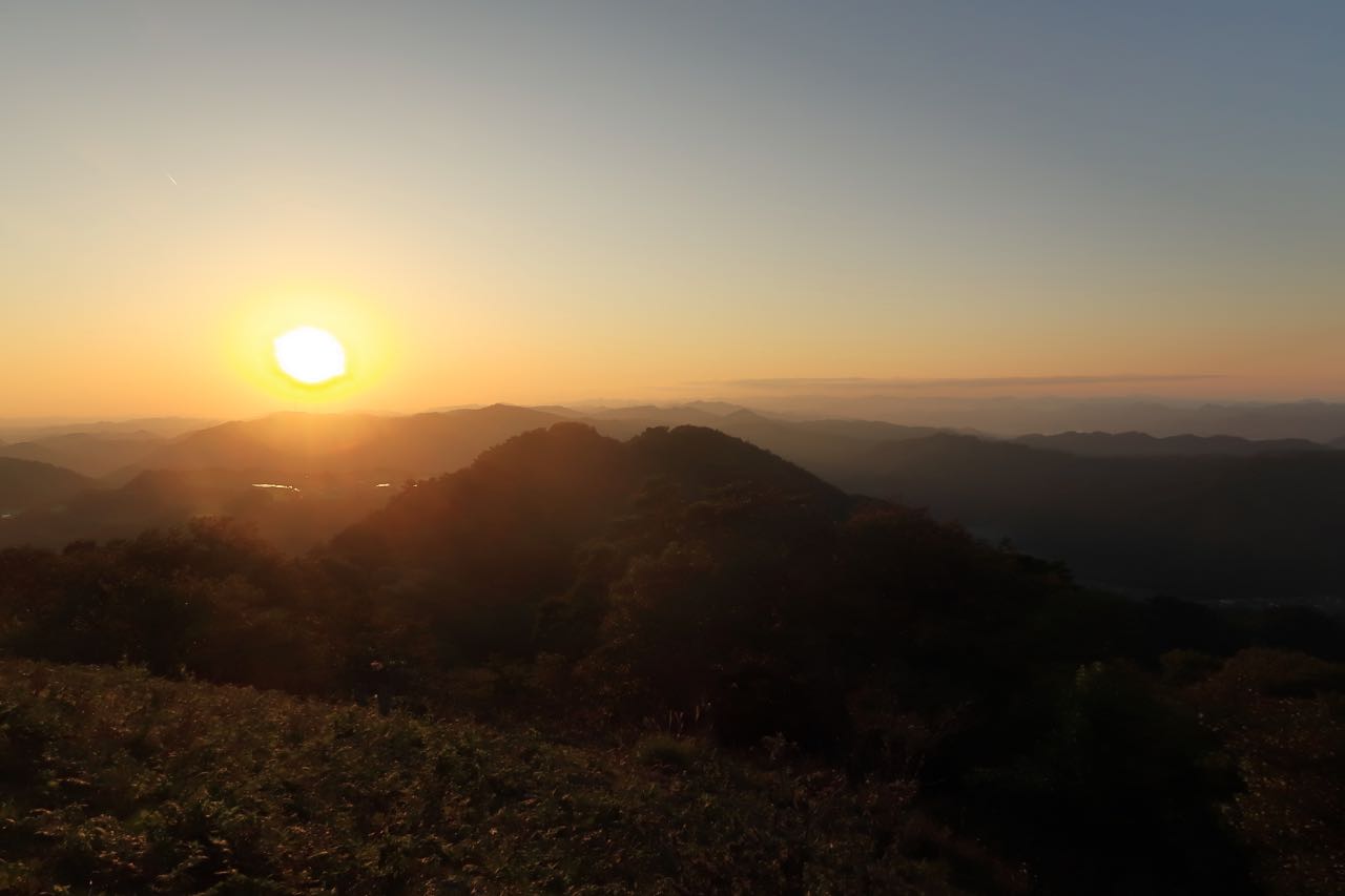 この景色! これが観たかった!! 長野の山に上ったかのような絶景だ。標高 720m ぐらいだけど。 ^^ オレンジ色に染まり始めたパノラマ風景は、なかなか見応えがあった。
