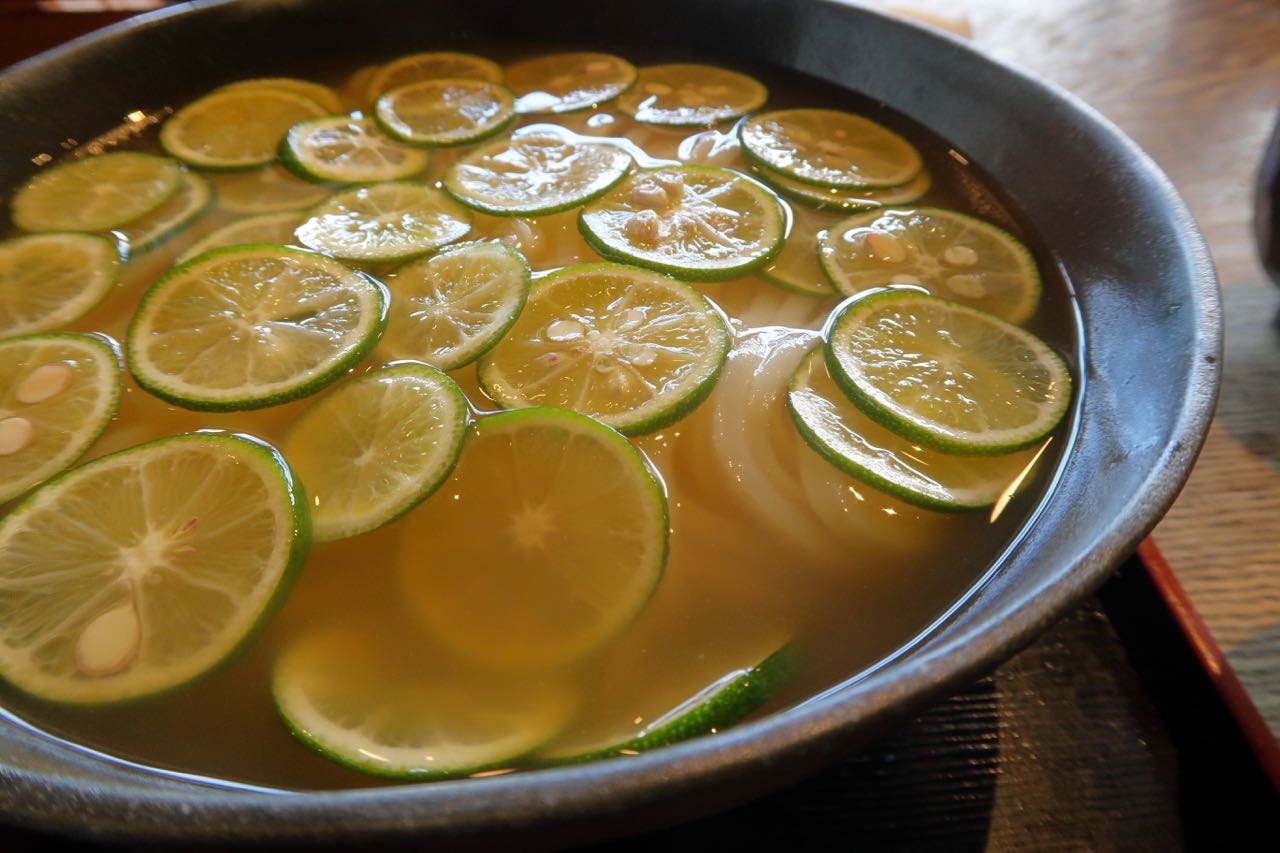 インパクトのあるフォトジェニックな すだちうどん。 ^^;