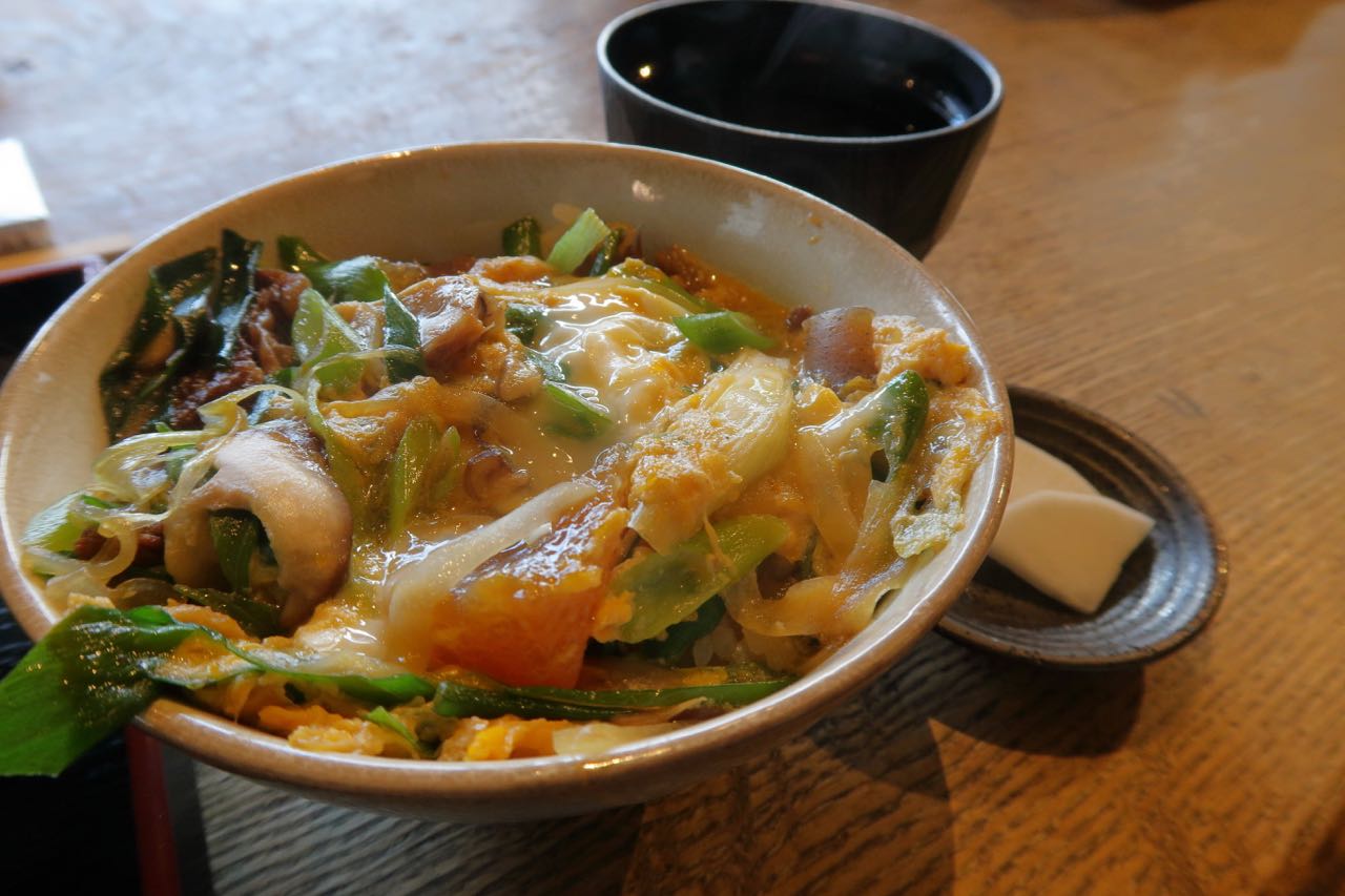 お店の名前からして、特徴の一つだと思われる すじ丼 の小も頼んだ。牛すじの卵とじ丼で、味噌汁と漬物も付いている。とろとろに甘辛く煮込んだ牛すじの丼で、半熟卵と相性バッチリ。