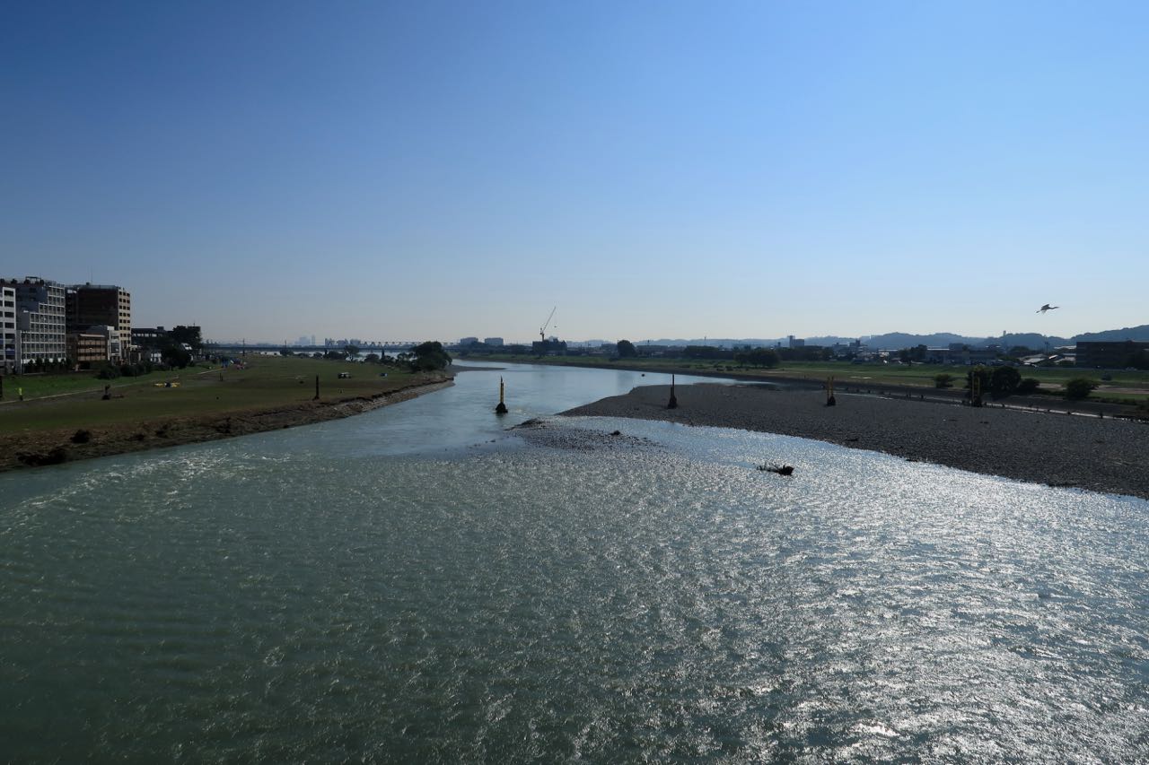 矢野口手前の多摩川原橋にて。先週は増水してたらしいけど、無事に戻ったようだ。ちょっと水量が多いかも…というぐらいの印象だった。