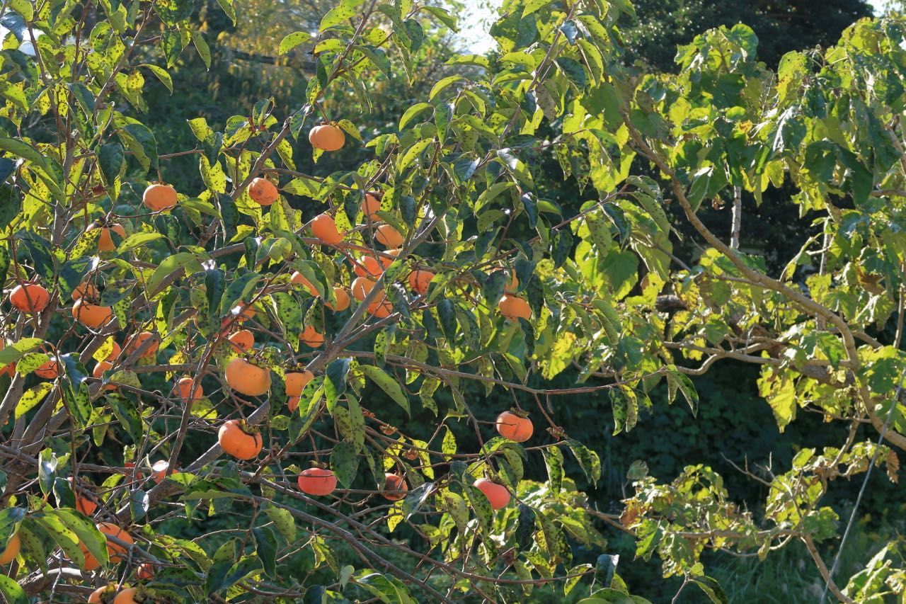 走り続けた街中とは打って変わって、柿の木があるような山っぽいエリア。