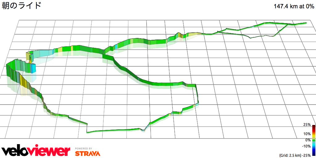 想定外の 150Km。筋力、持久力は、ちょっと衰えてるかも…ぐらいで、無事に走りきれた。踏んでるつもりでも表示されるスピードがちょっと遅かったり、あんまり長続きしなかったり…で、信号峠コースだったとはいえ、平均速度もちょっと遅かった。